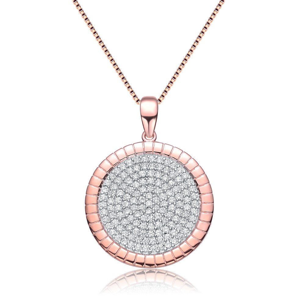 Cz .925 Sterling Silver Rose Plated Classic Round Pendant
