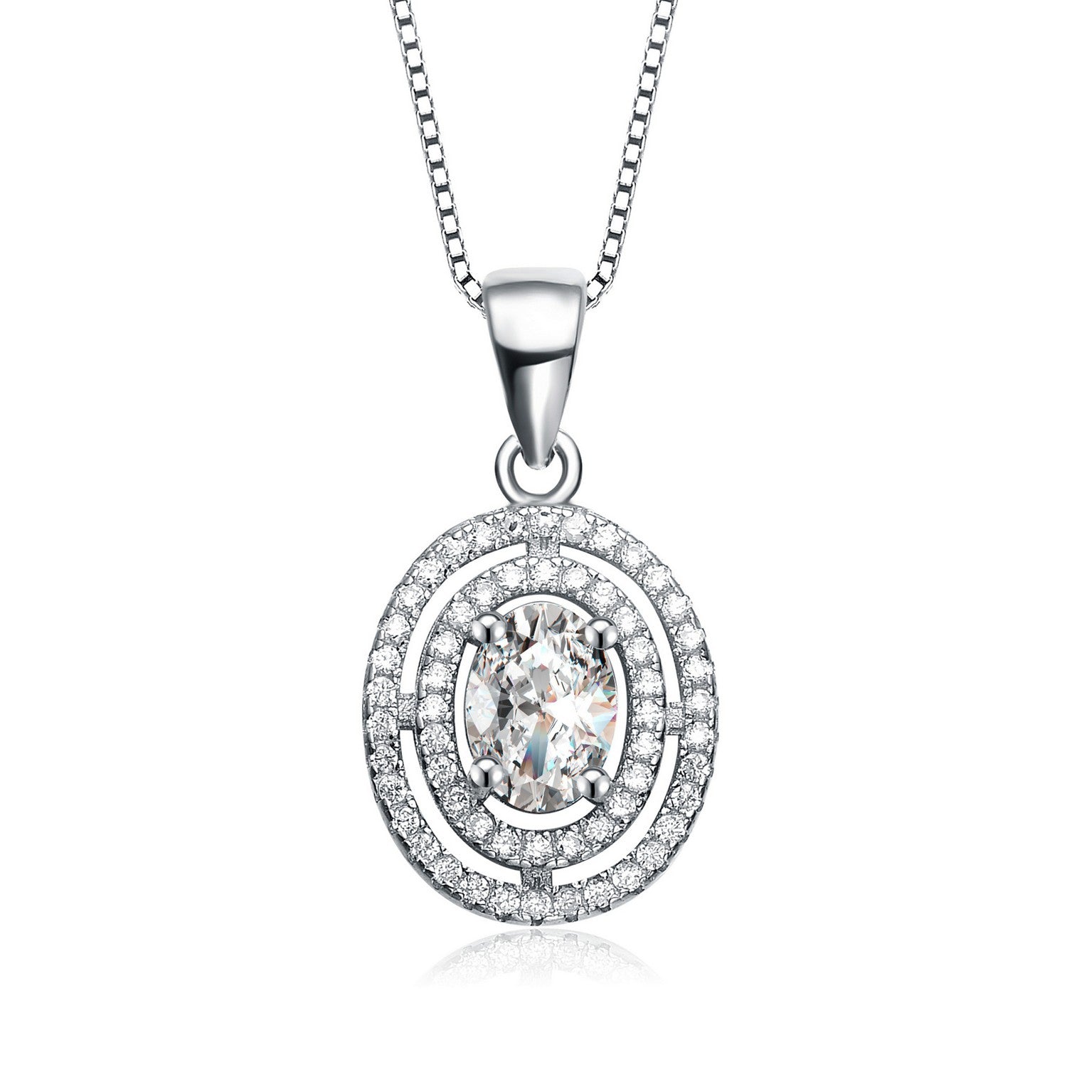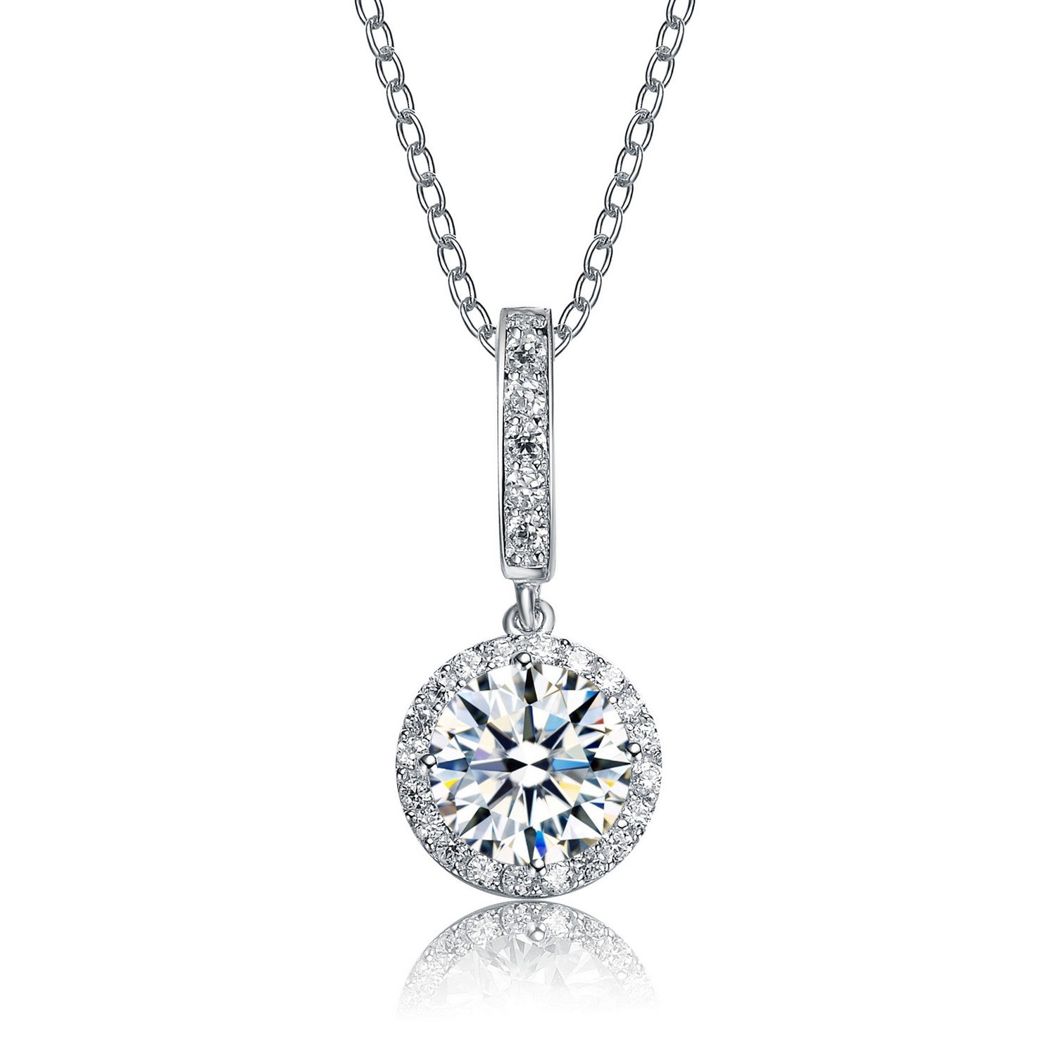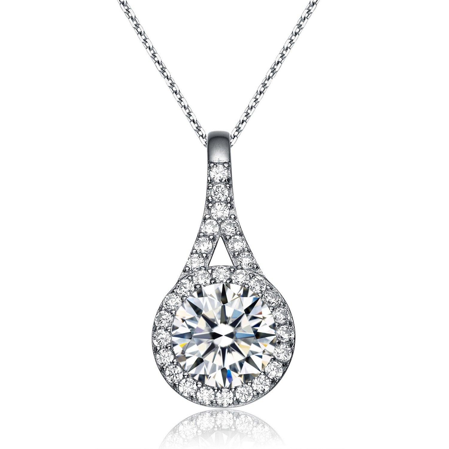 Cz .925 Sterling Silver Rhodium Plated Classic Round Pendant