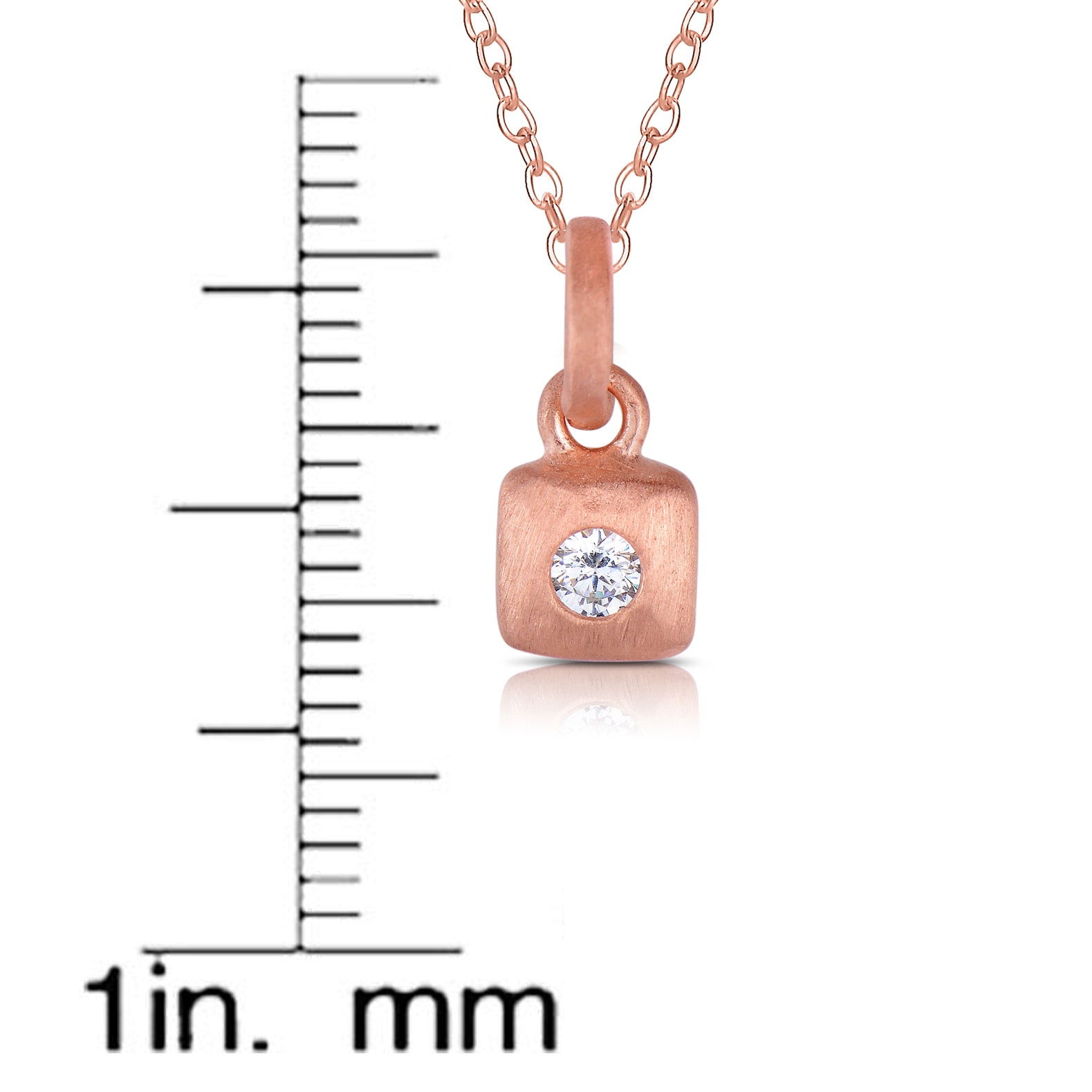 Cz .925 Sterling Silver Rose Plated Brushed Square Shape Drop Pendant