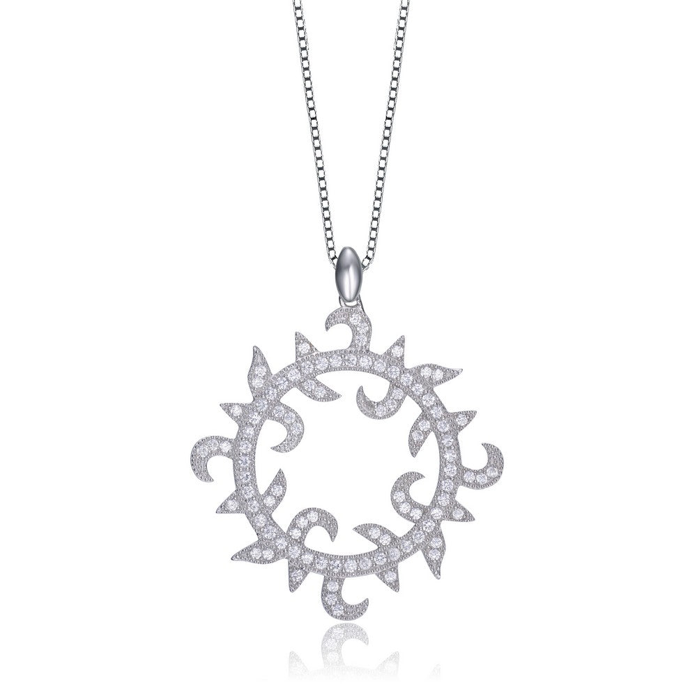 Cz .925 Sterling Silver Clear Cubic Zirconia Sun-themed Necklace