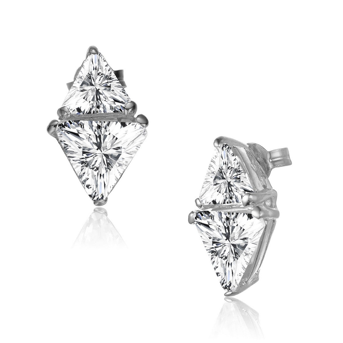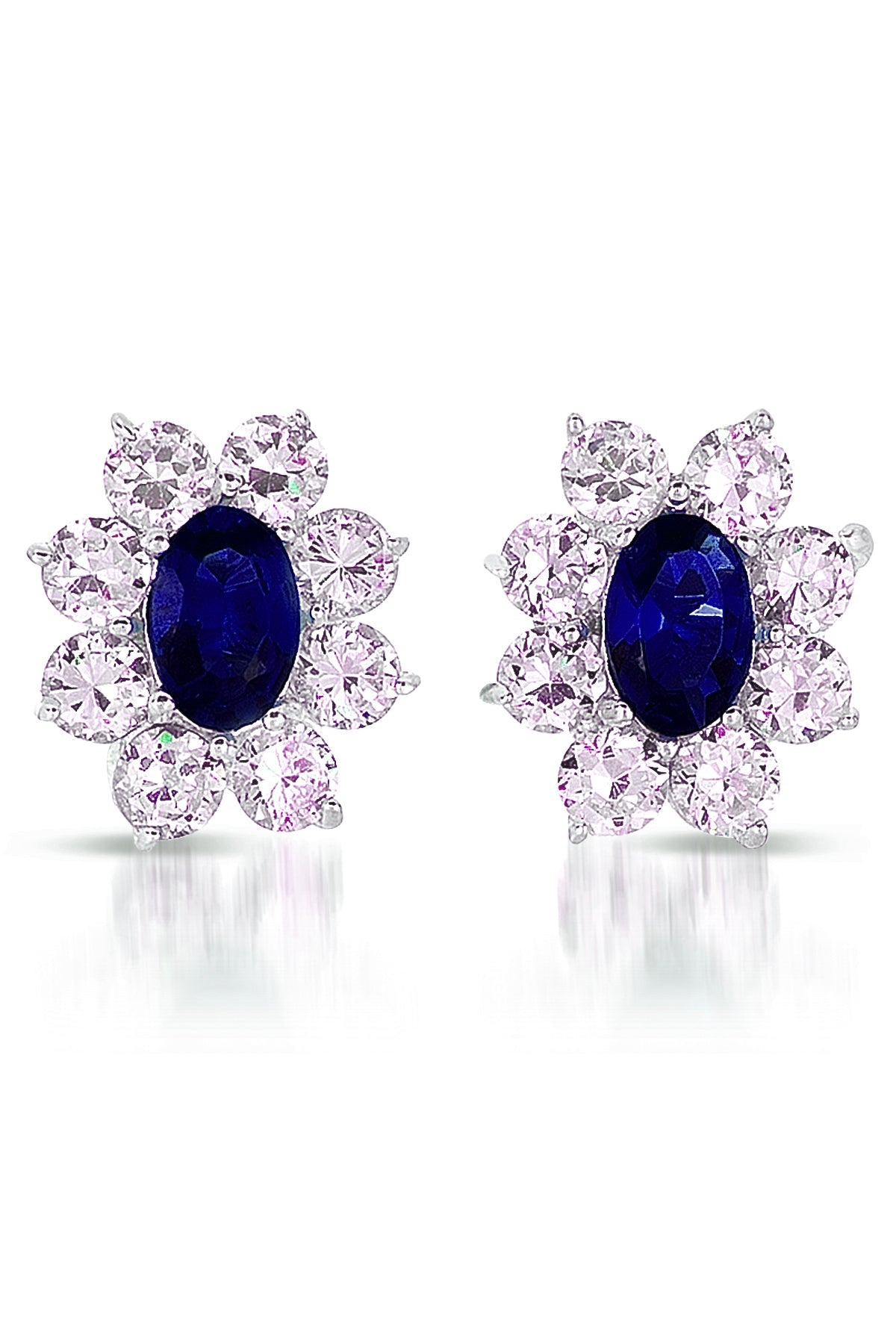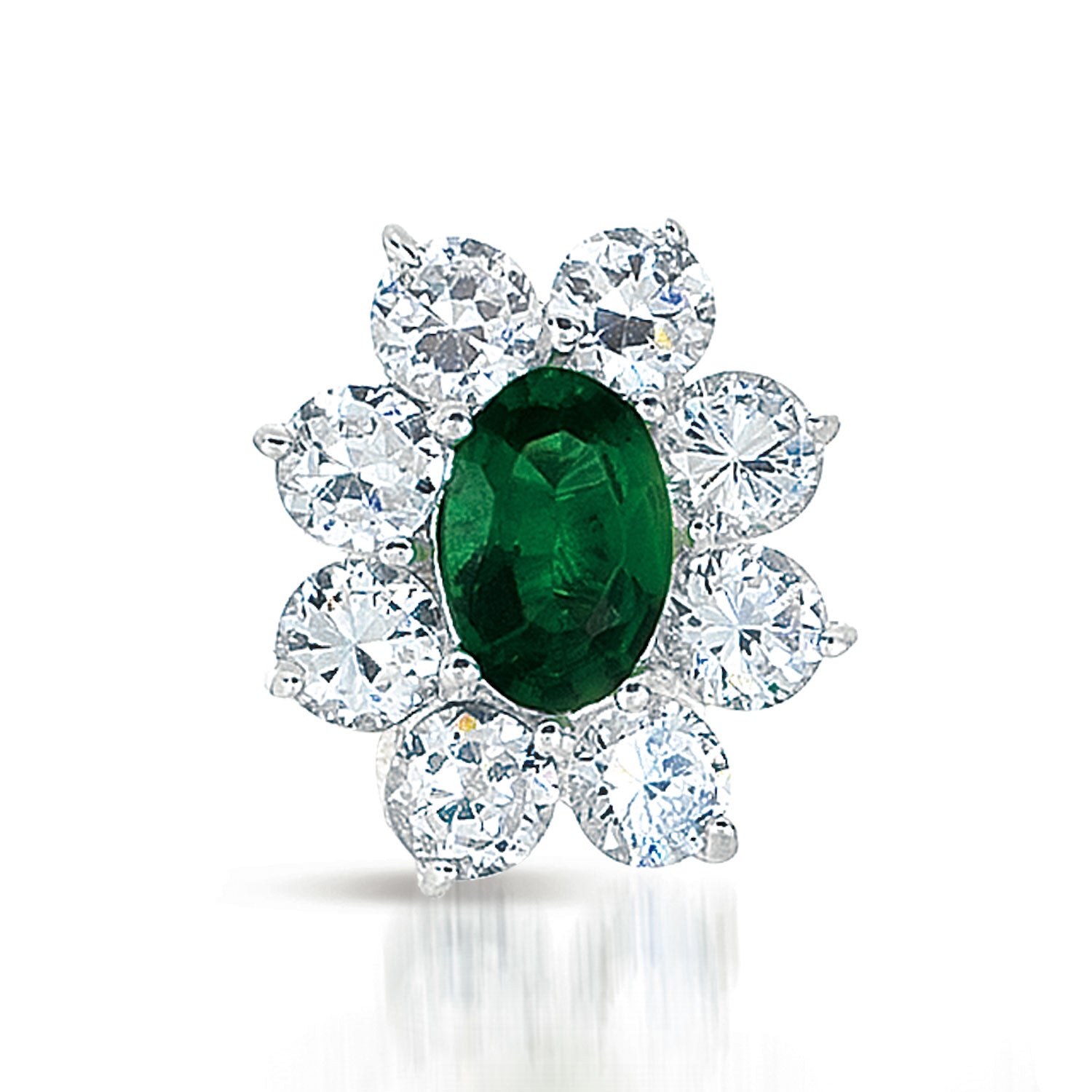 Sterling Silver Emerald Cubic Zirconia Flower Stud Earrings