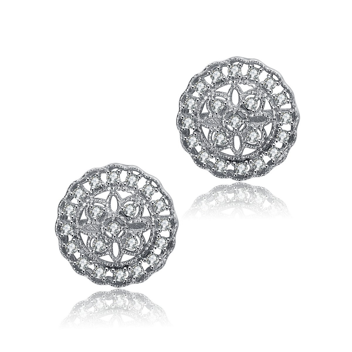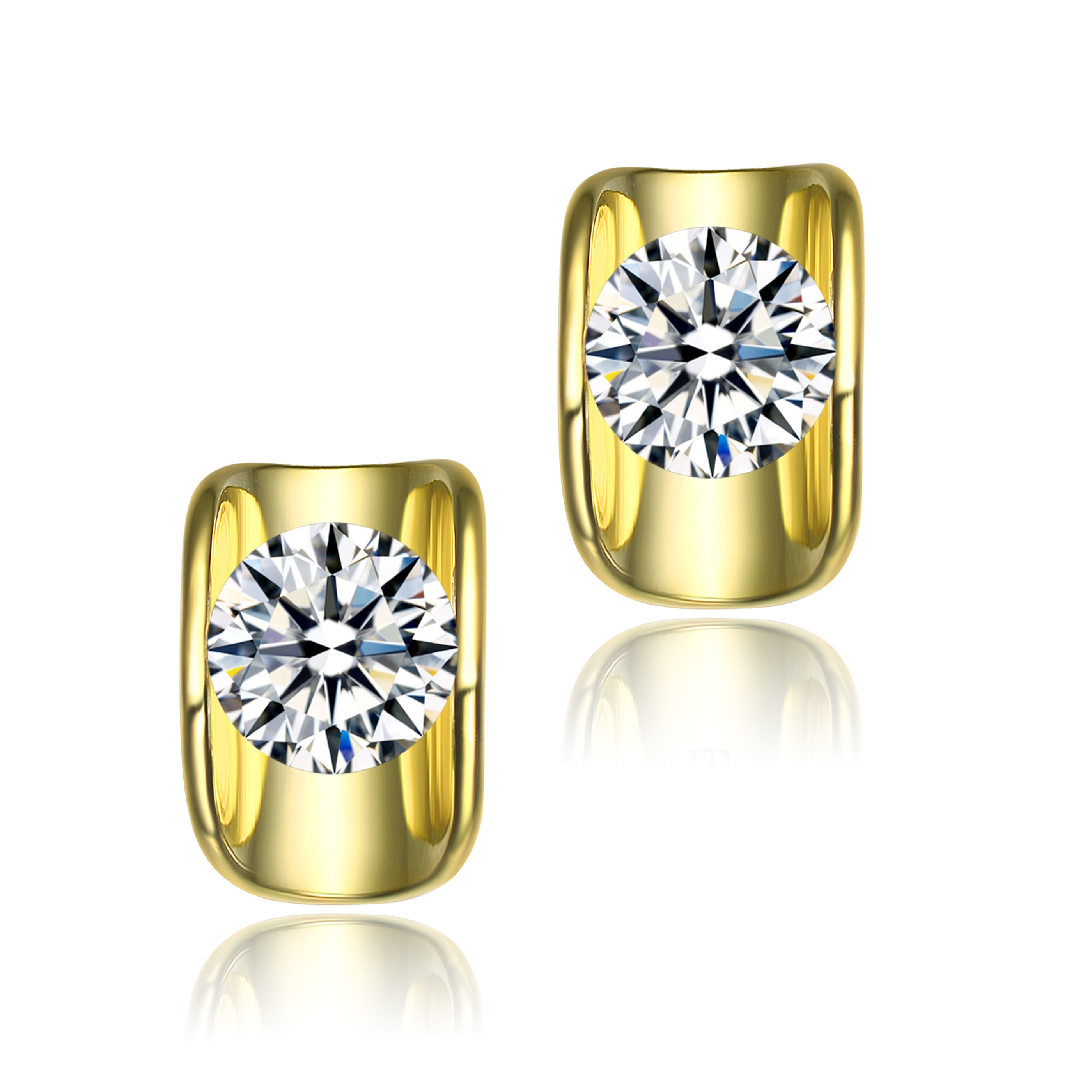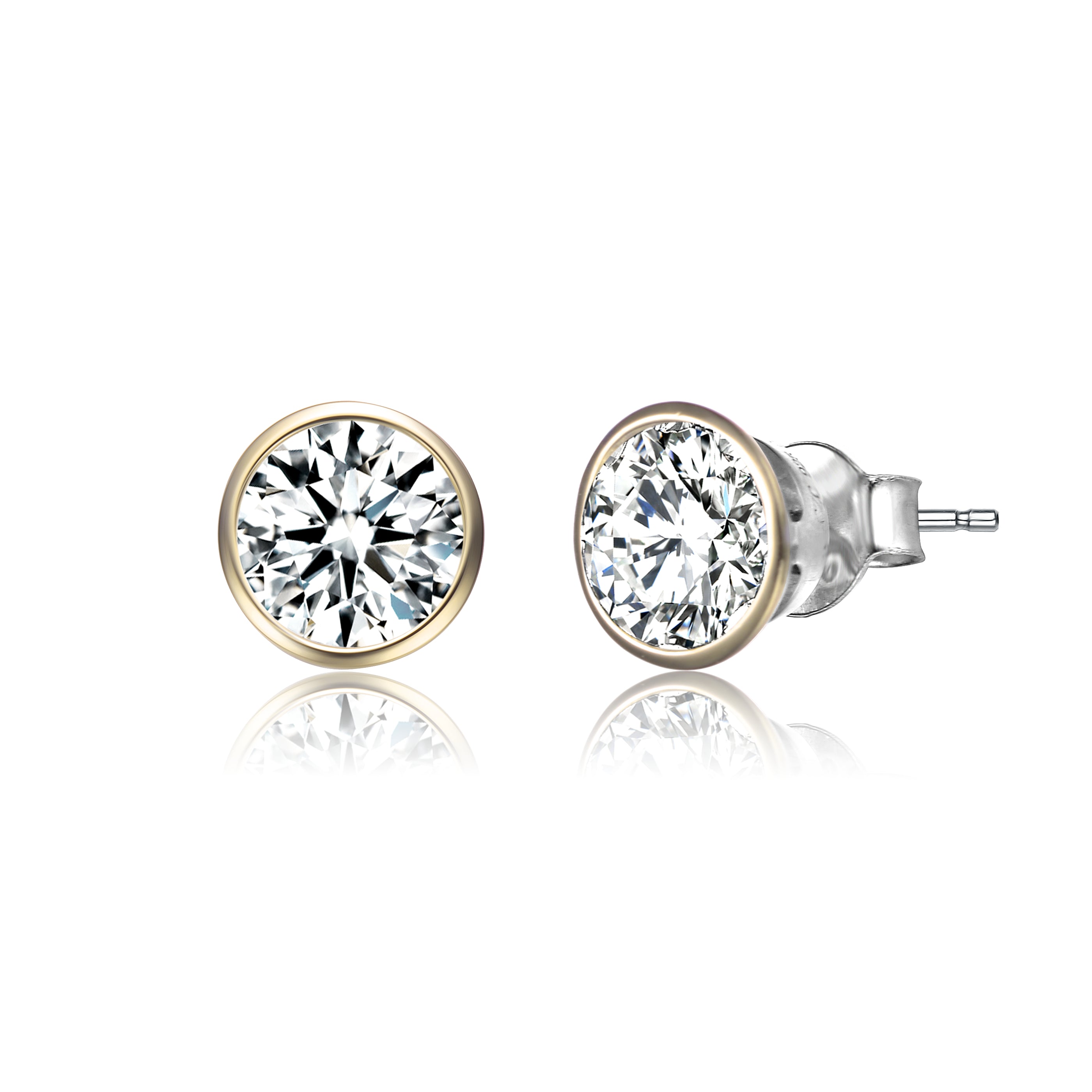 .925 Sterling Silver Yellow Cubic Zirconia Button Stud Earrings