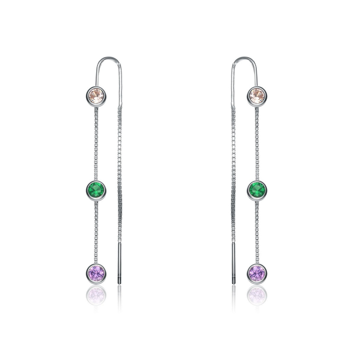 Sterling Silver Multi Colored Cubic Zirconia Dangle Earrings
