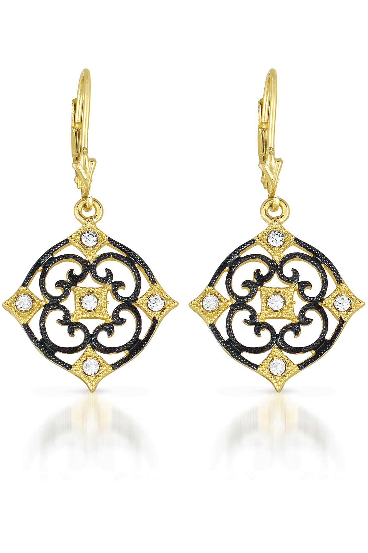 Cubic Zirconia Sterling Silver Black And Gold Deco Earrings