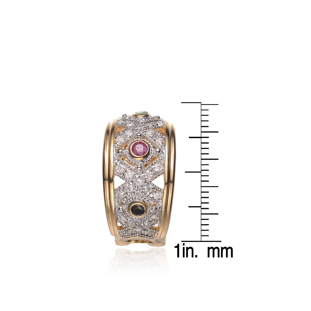 Cubic Zirconia Sterling Silver Gold Plated Multi Color Gem Earrings