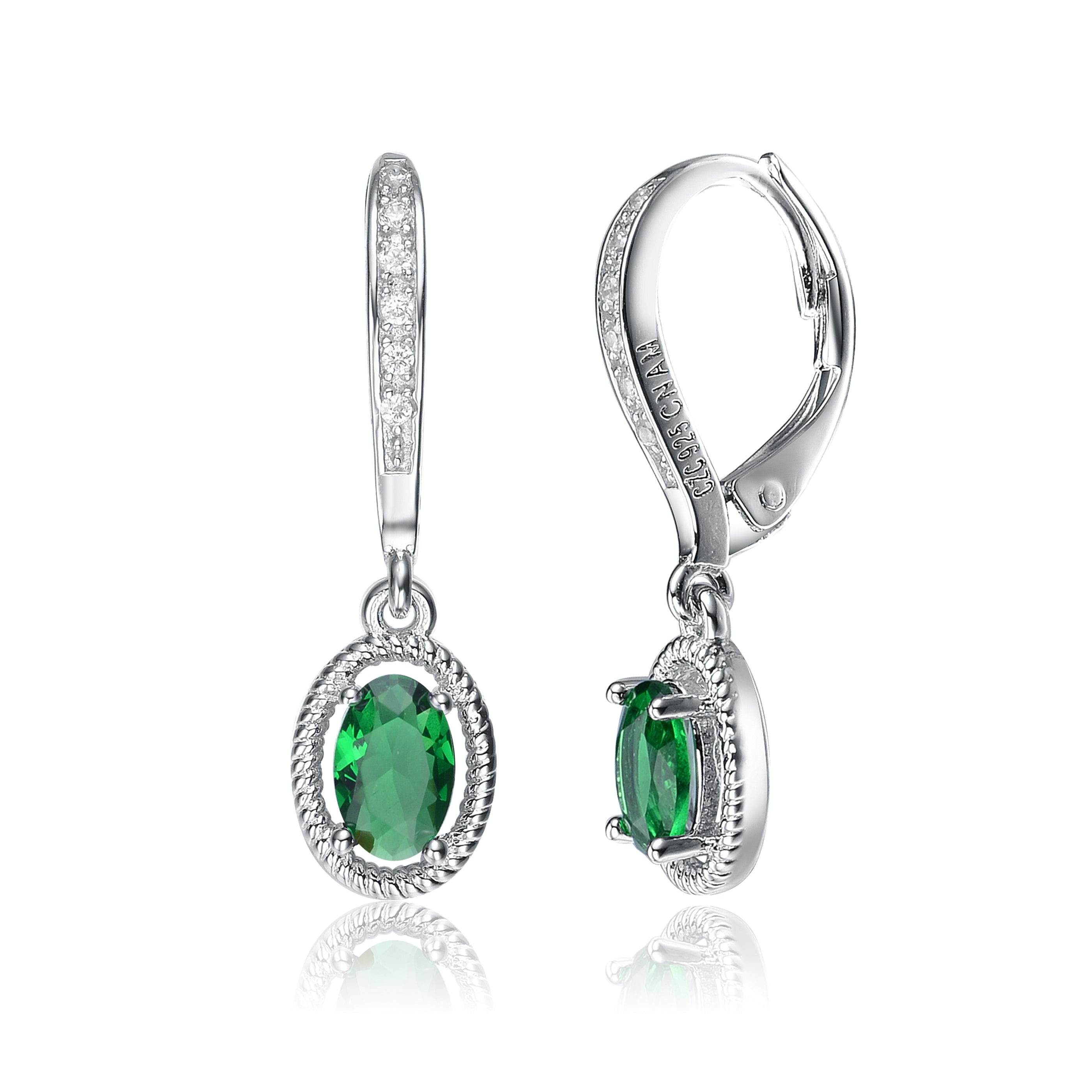 Sterling Silver Green Cubic Zirconia Oval Dangling Earrings