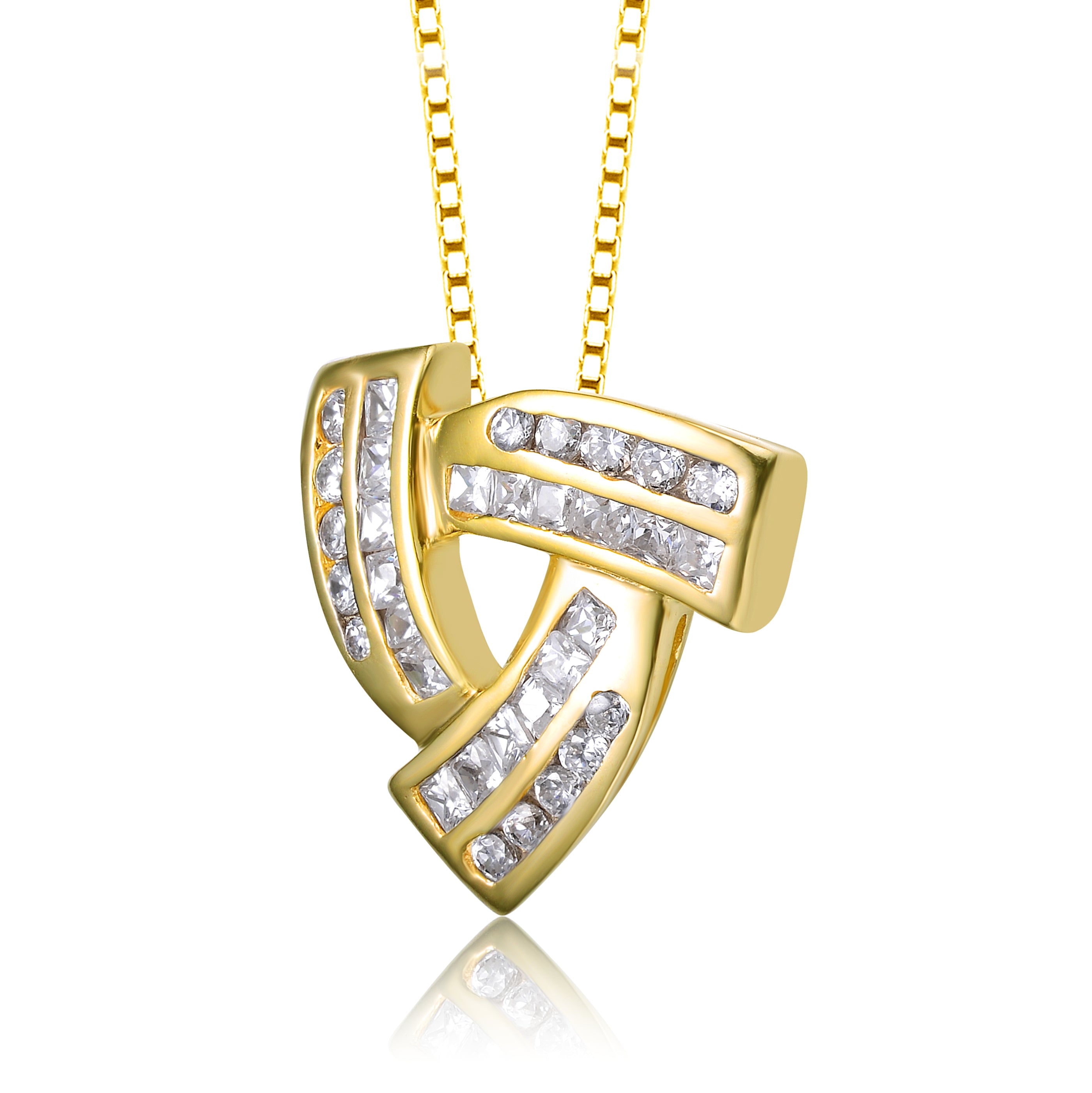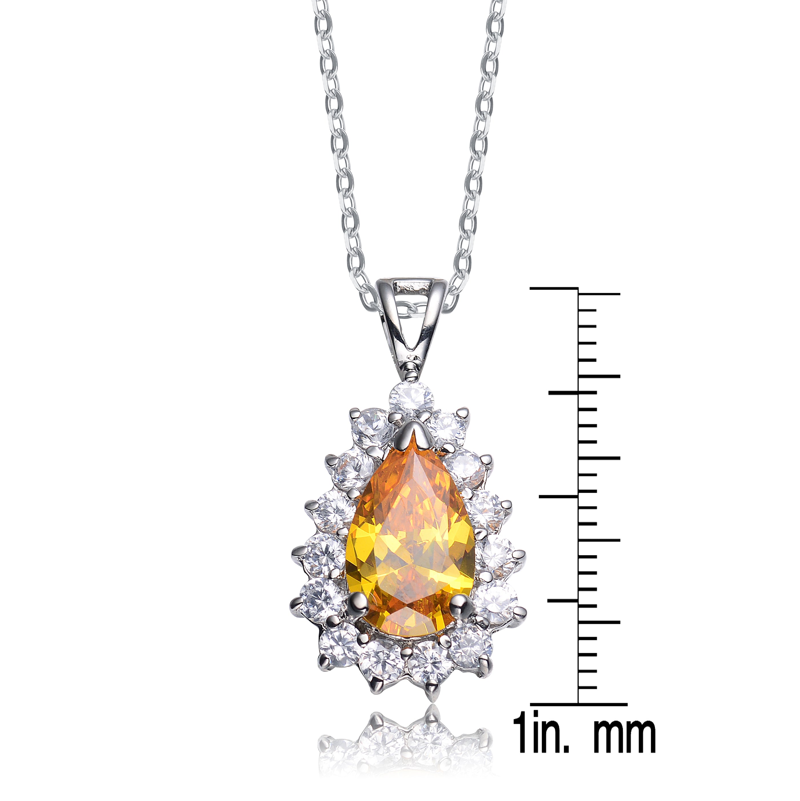 Rhodium-Plated Sterling Silver Pendant with Yellow and Clear Cubic Zirconia
