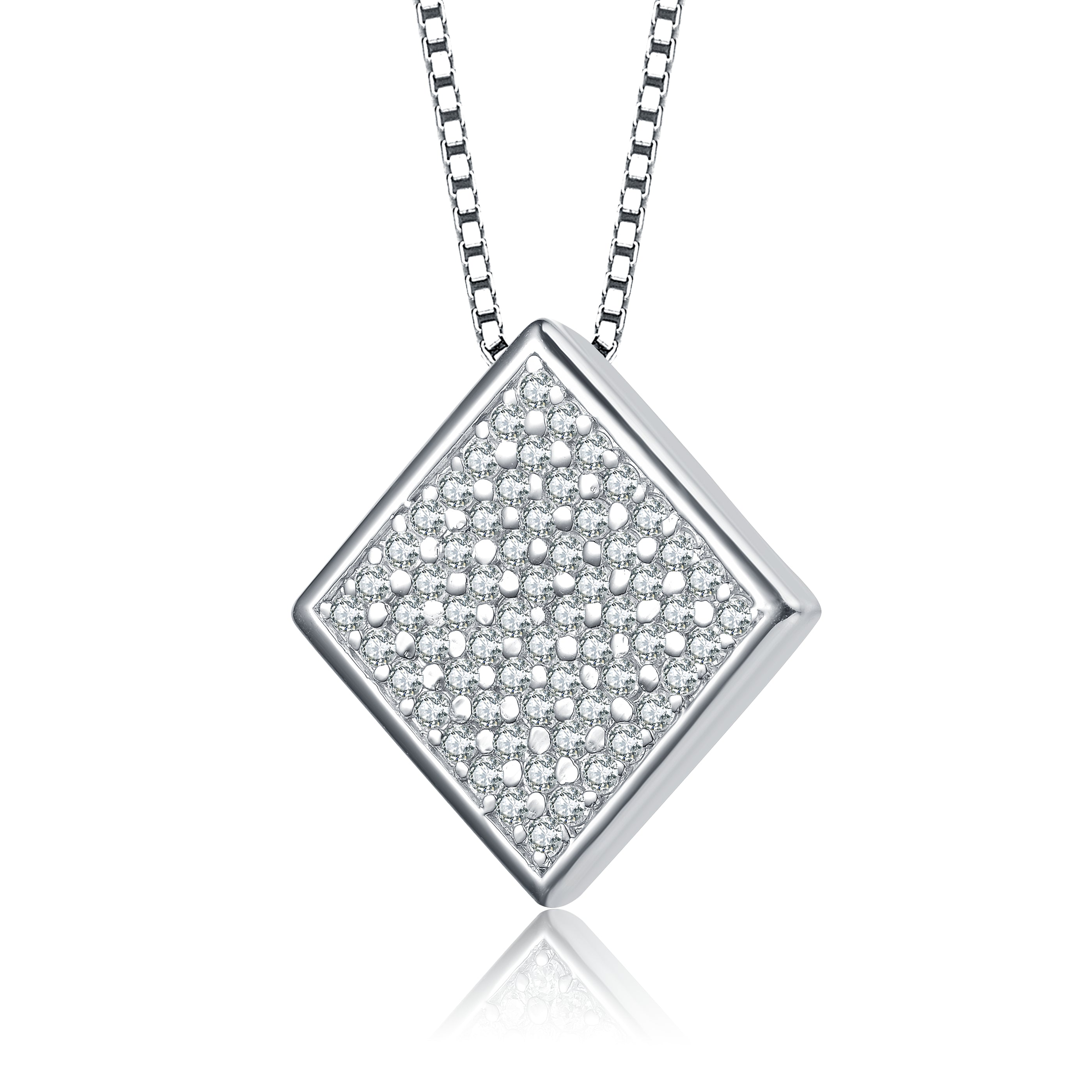 Sterling Silver Cubic Zirconia Square Pendant Necklace