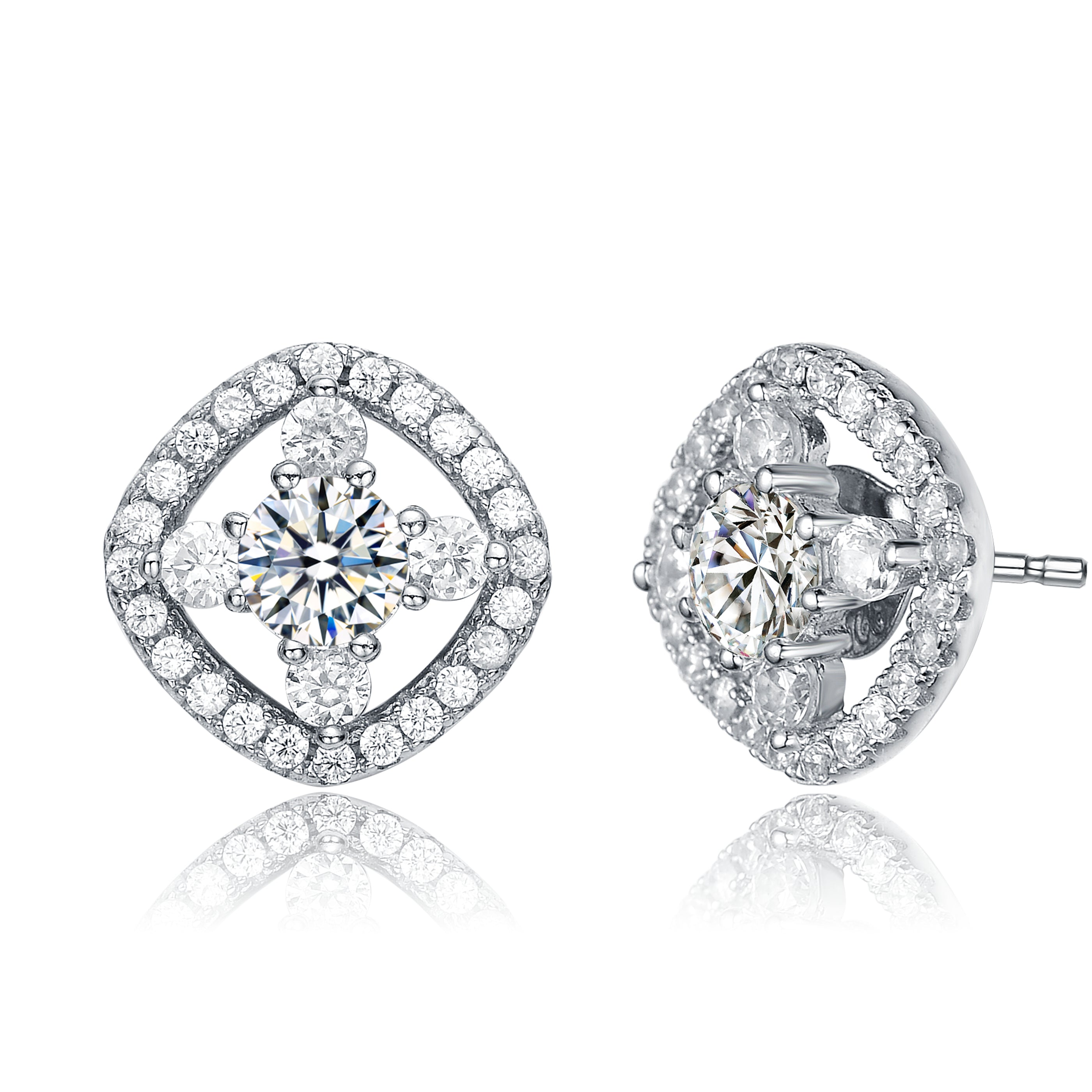 Cubic Zirconia Sterling Silver Rhodium Plated Square Shape Earrings