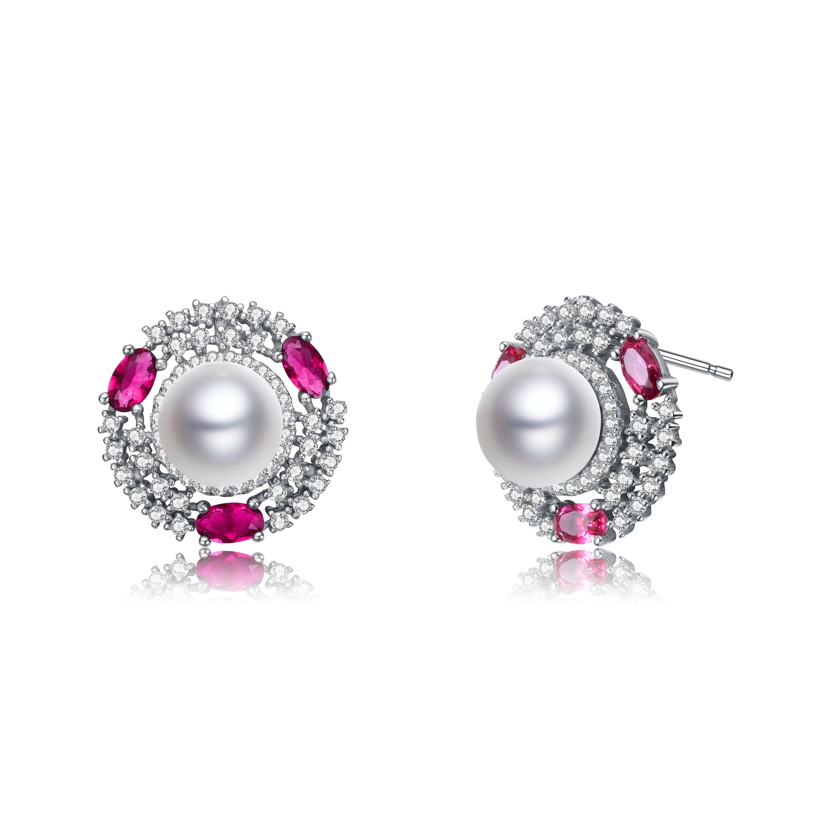 Sterling Silver Pearl Emerald Cubic Zirconia and Rhodium Plating Stud Earrings