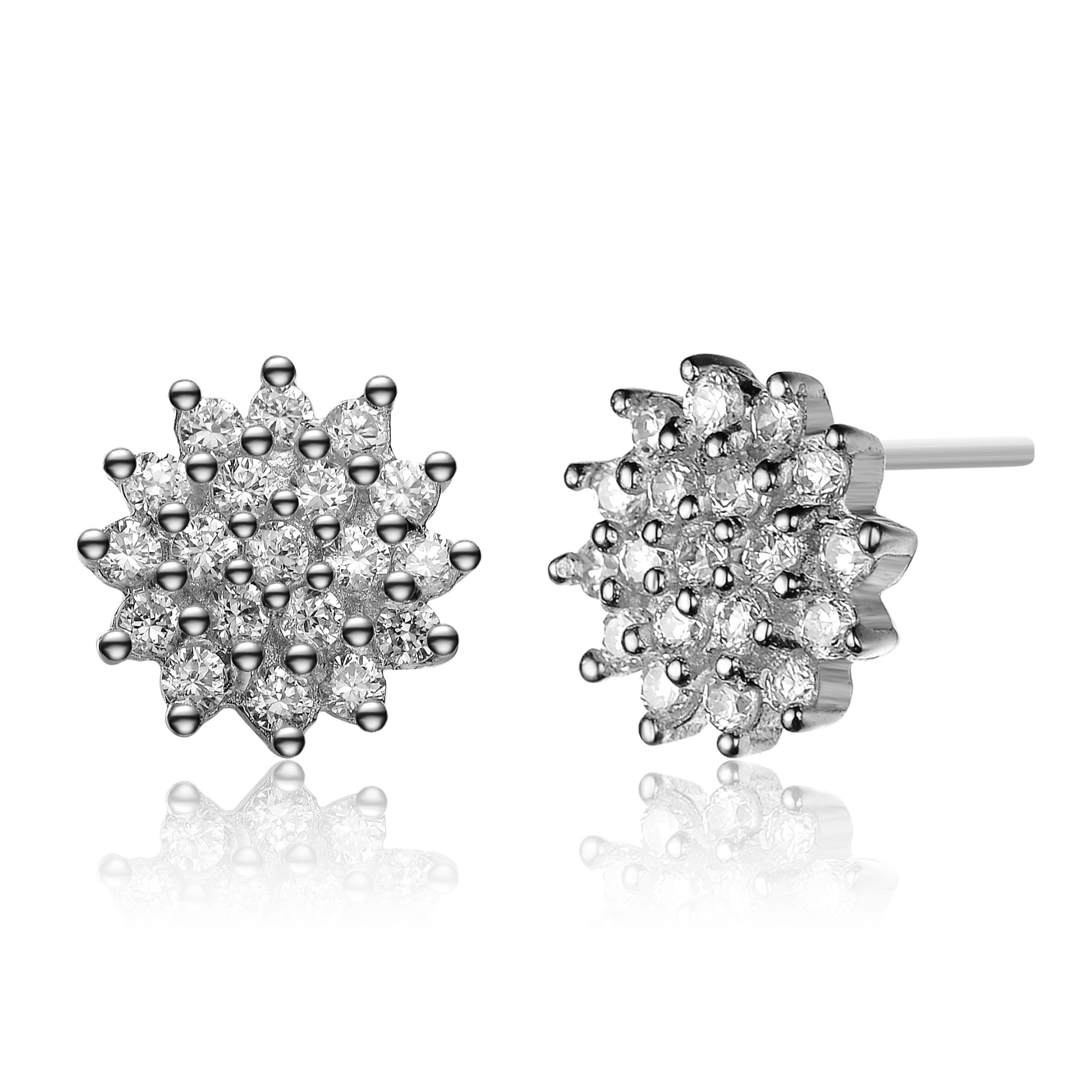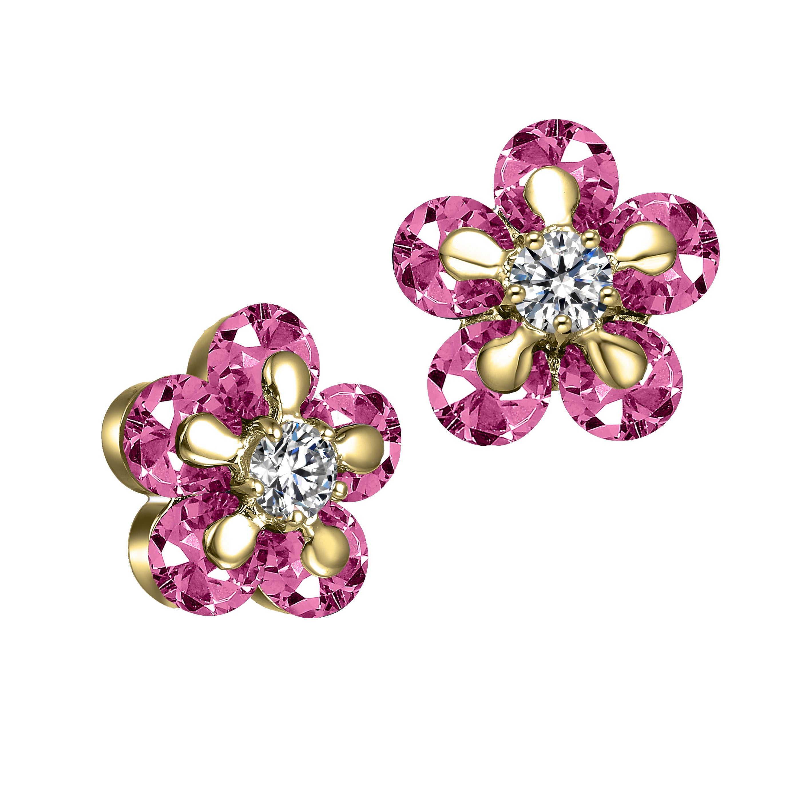 Pink Bloom Gold Sterling Silver Cubic Zirconia Stud Earrings