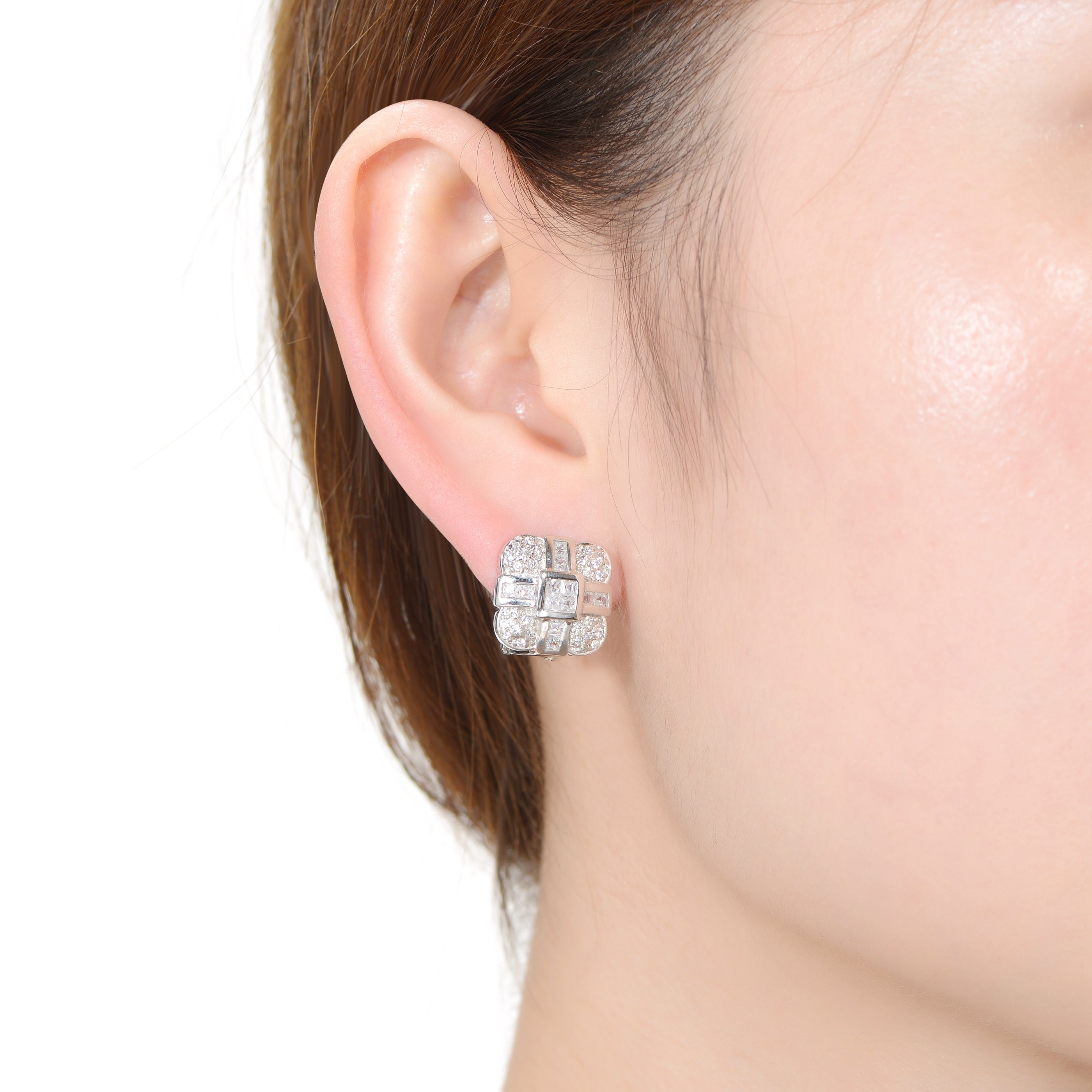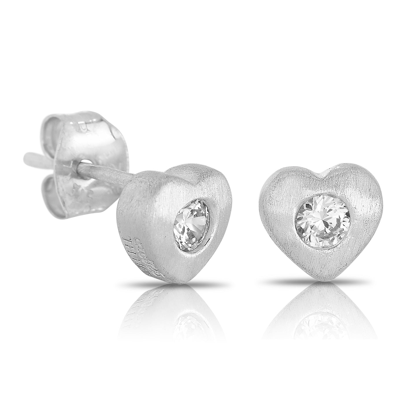 C.Z. Sterling Silver Rhodium Plated Brushed Bezel Set Heart Shape Earrings