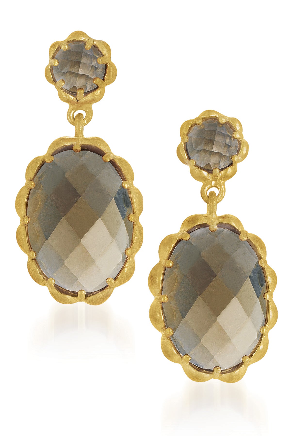 Gold Overlay Smoky Cubic Zirconia Drop Earrings