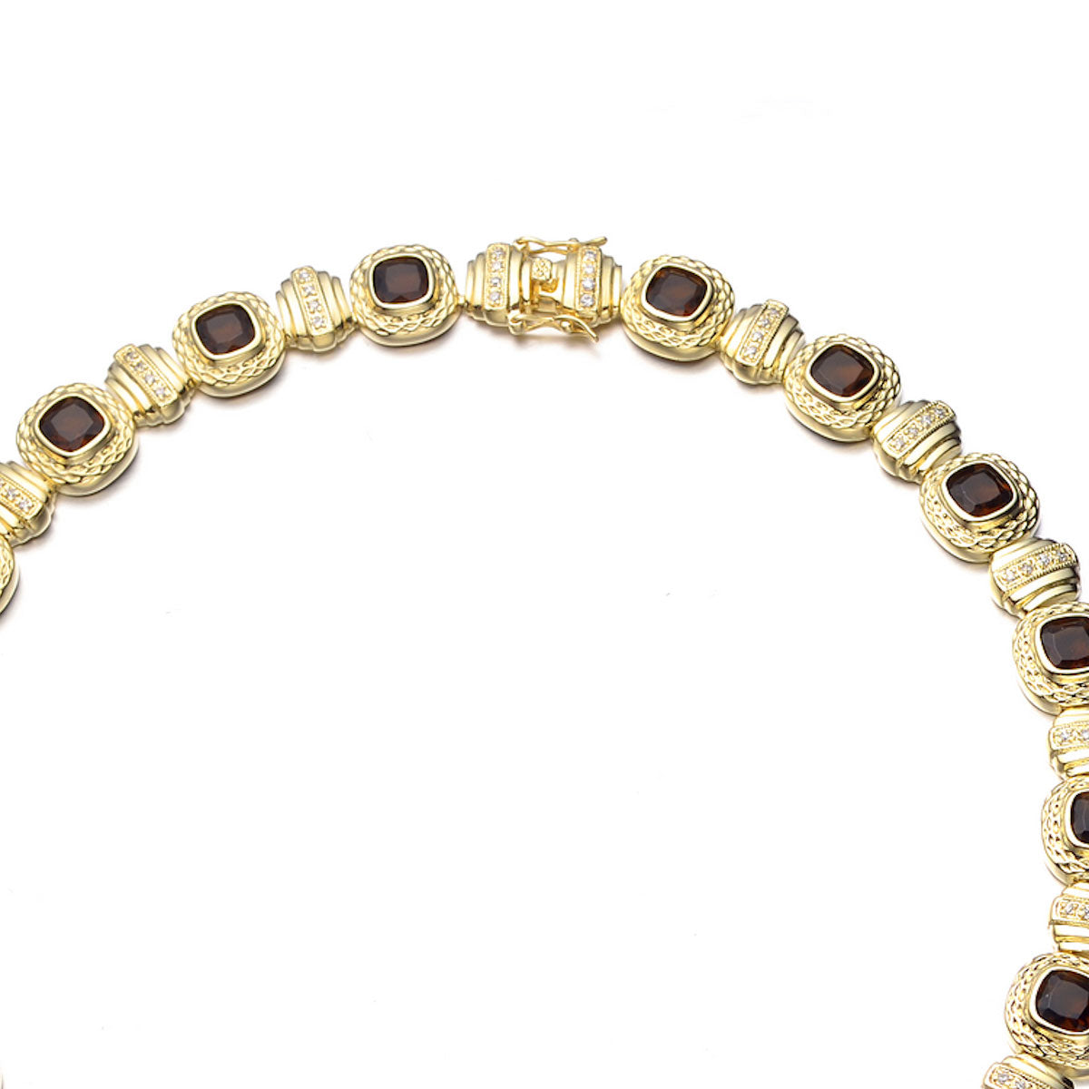 Gold Overlay Dark Brown Cubic Zirconia Mini Square Necklace