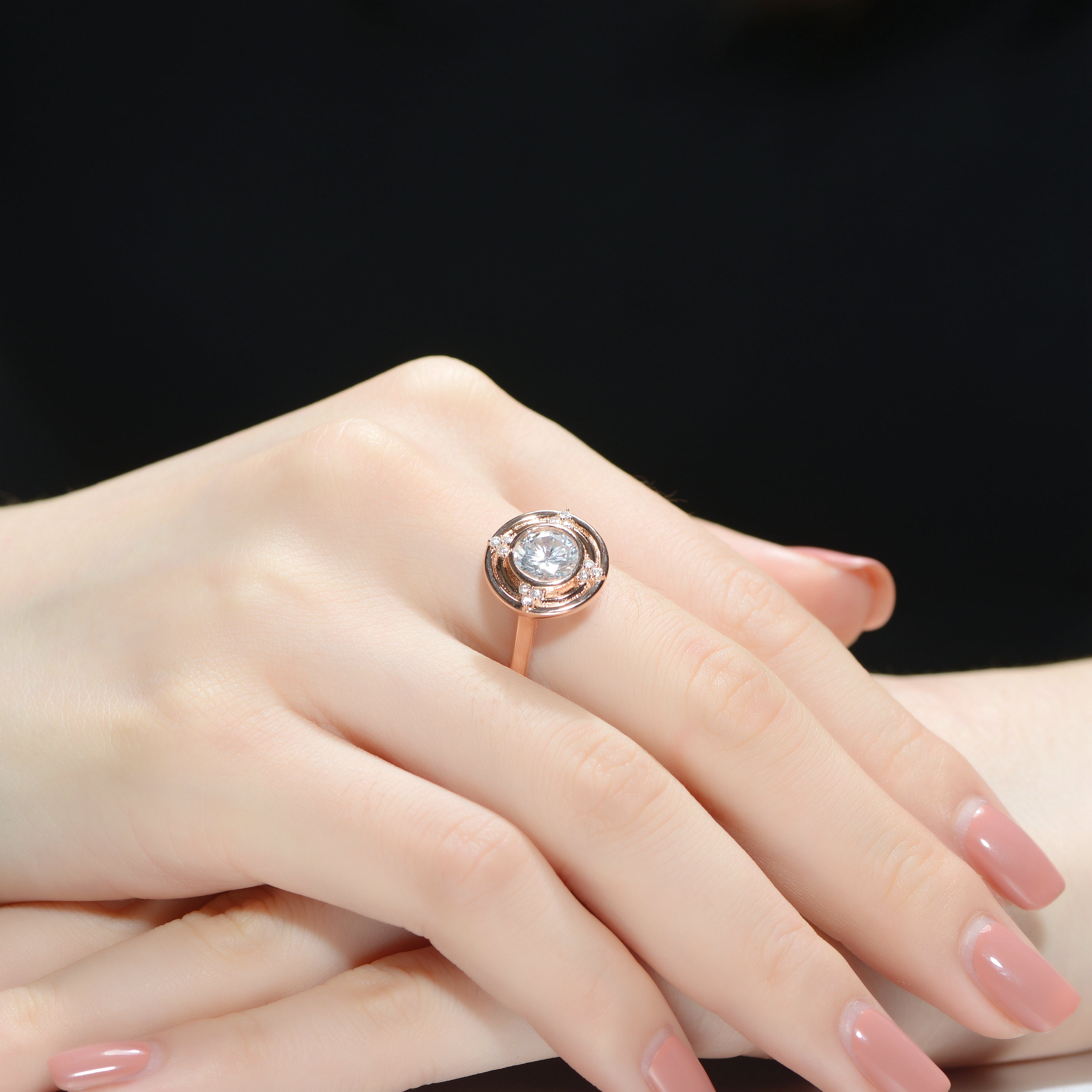 Rose Gold Plated Clear Cubic Zirconia Circle Solitaire Ring