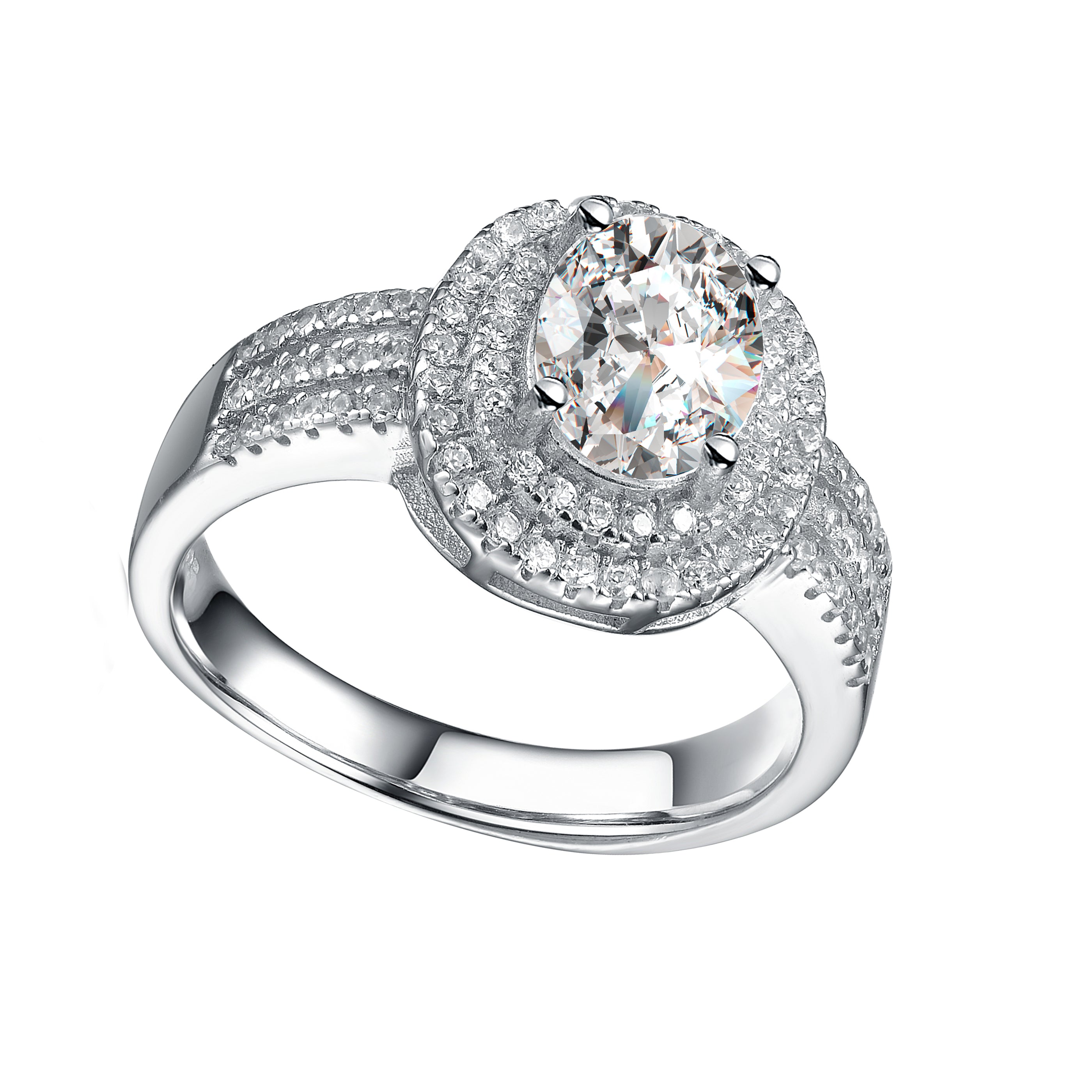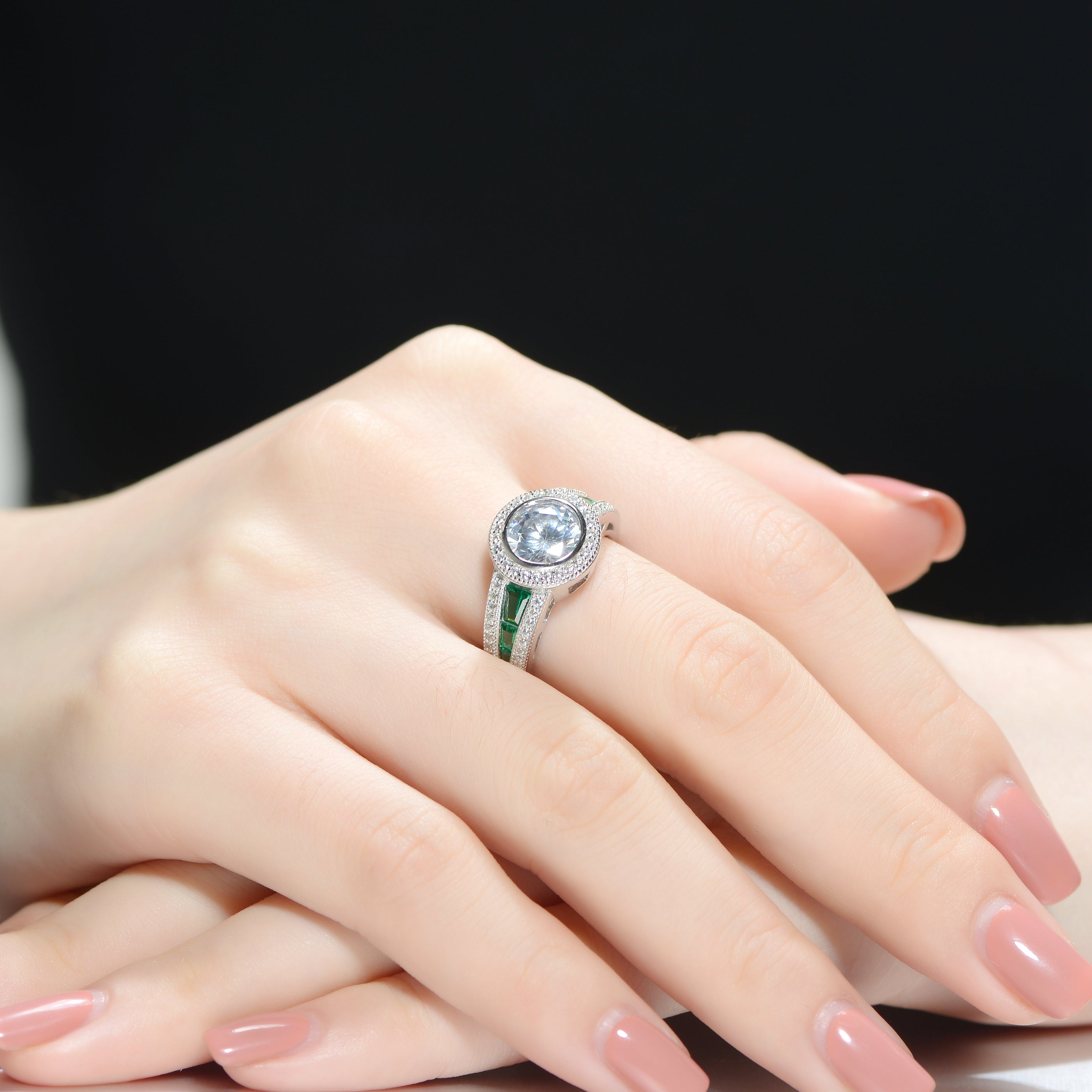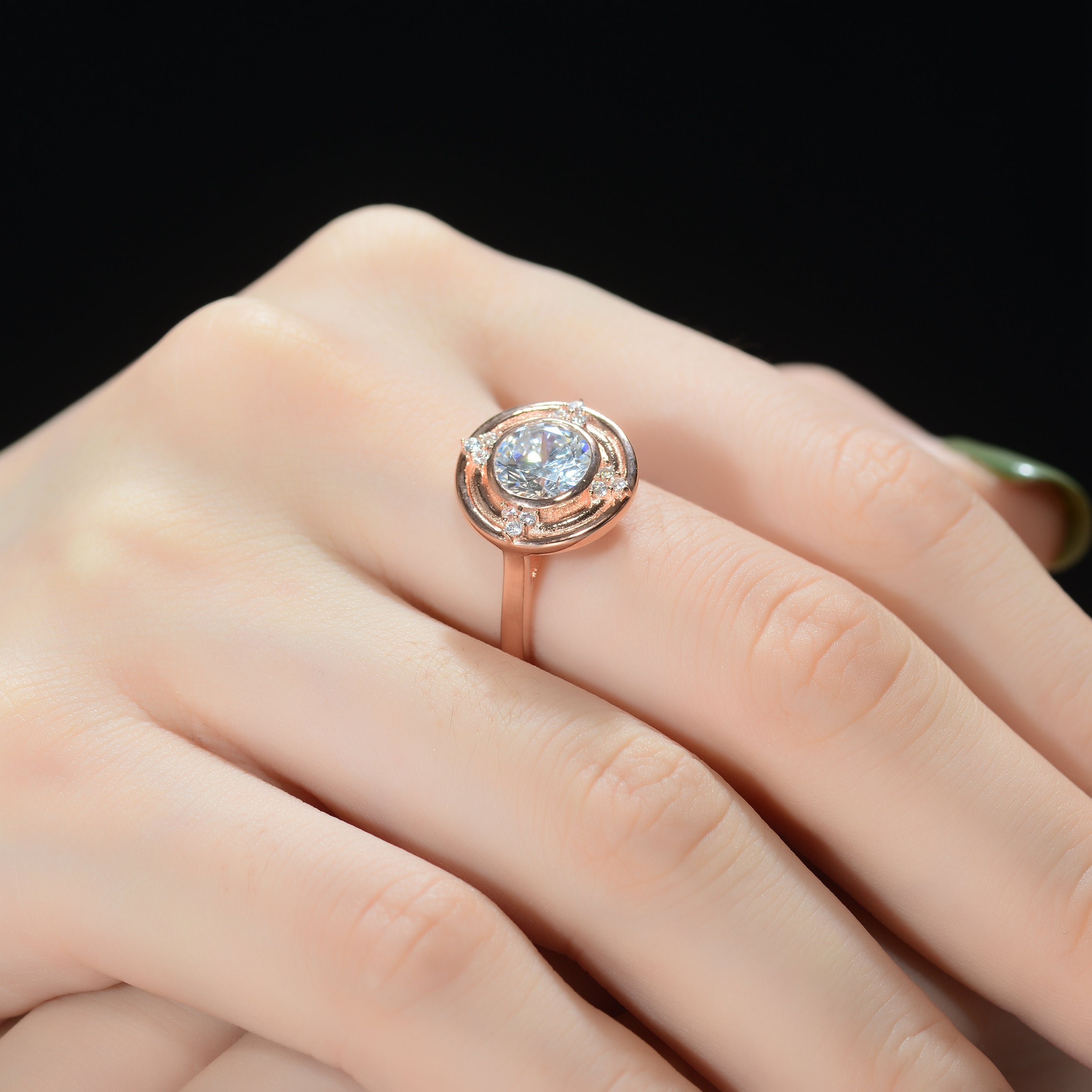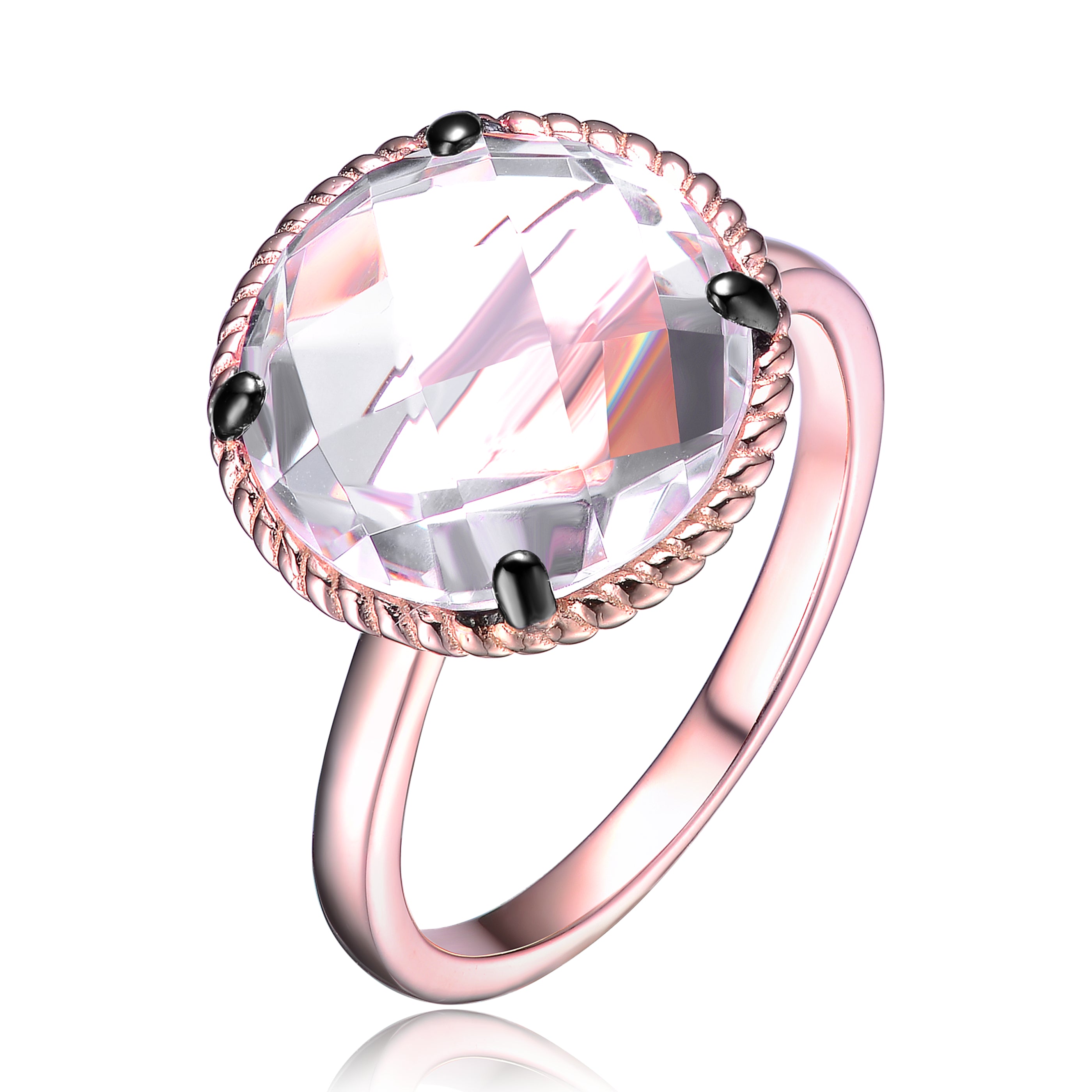 Rose Sterling Silver Cubic Zirconia Round Statement Ring
