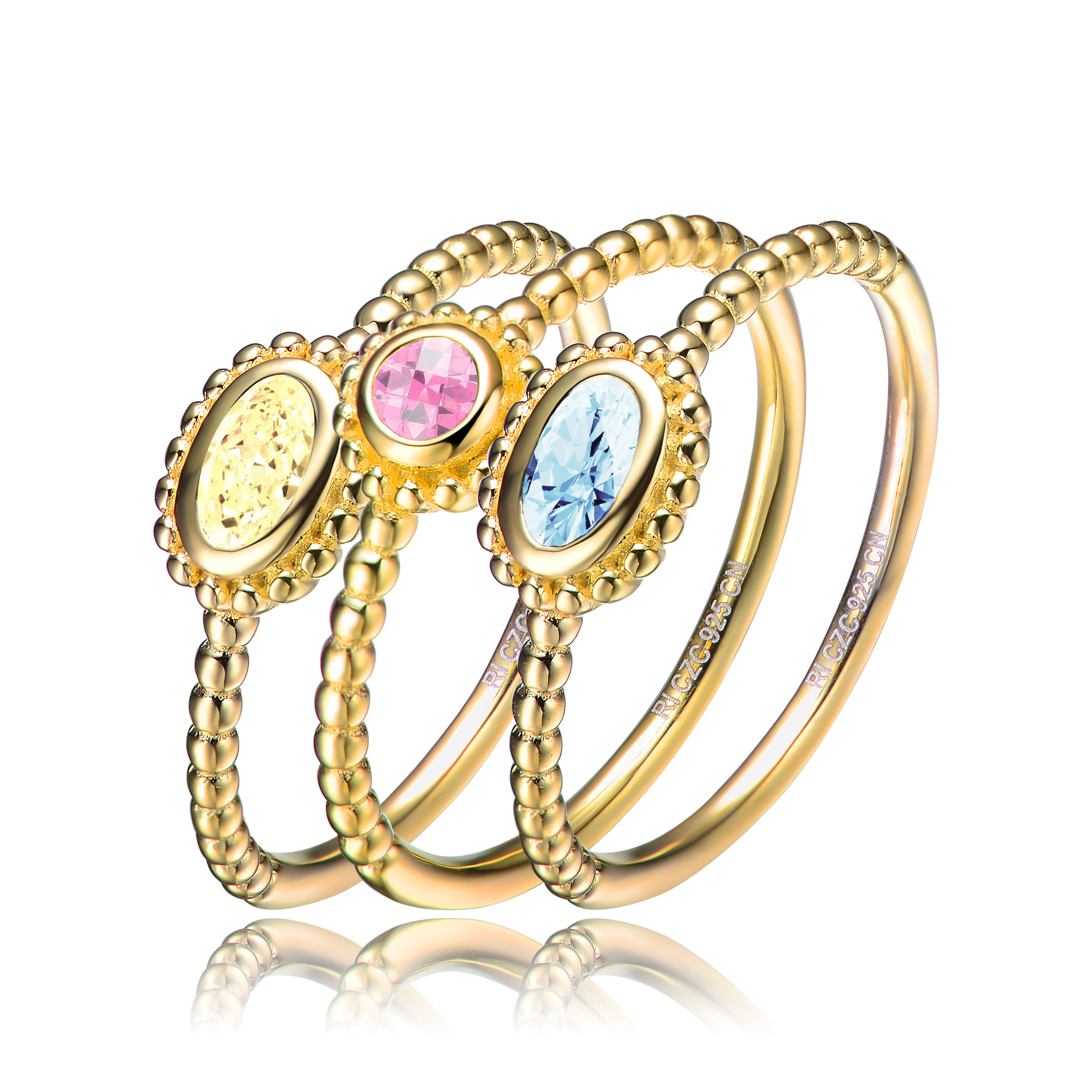 Gold-Plated Sterling Silver Ring with Multi-Colored Cubic Zirconia Size 5