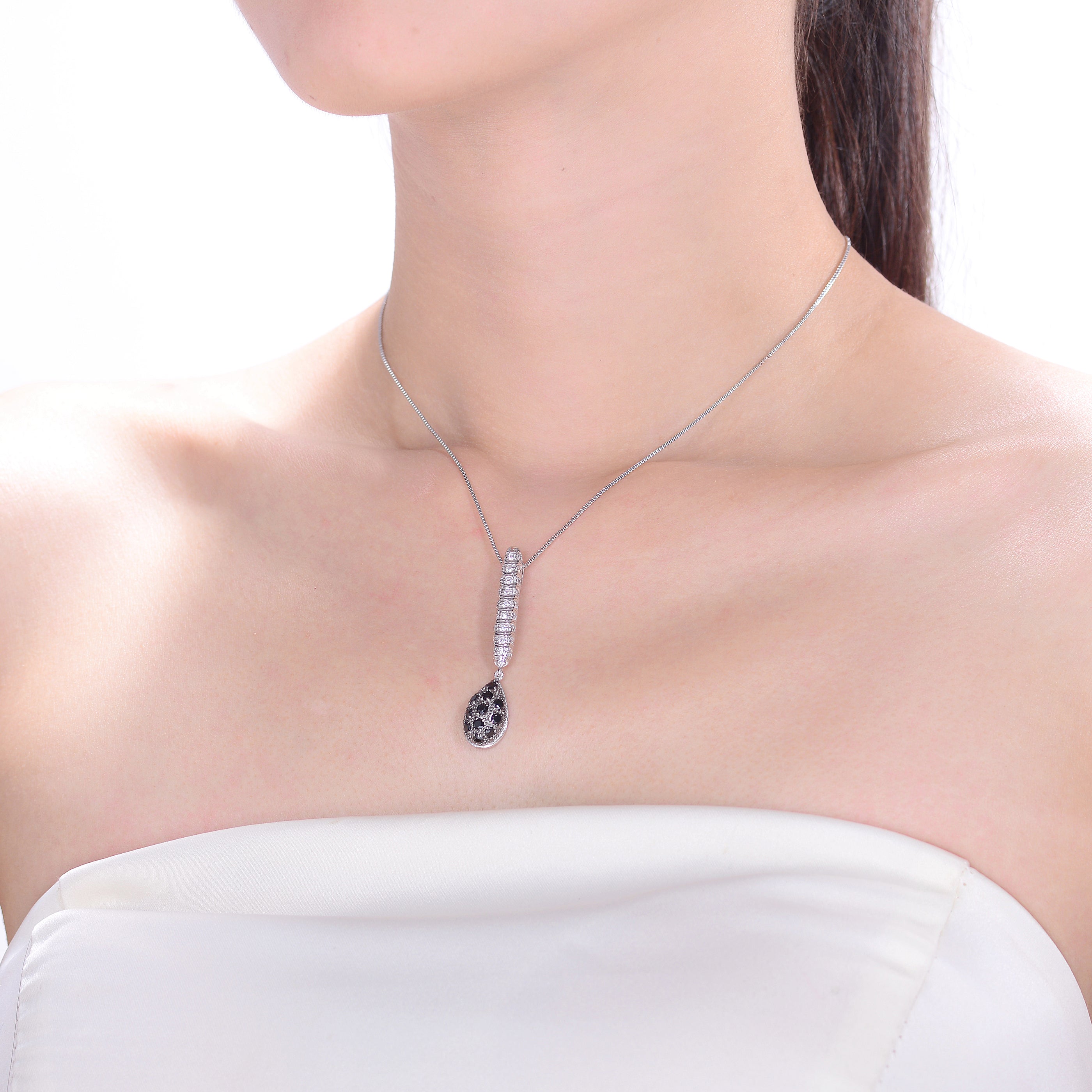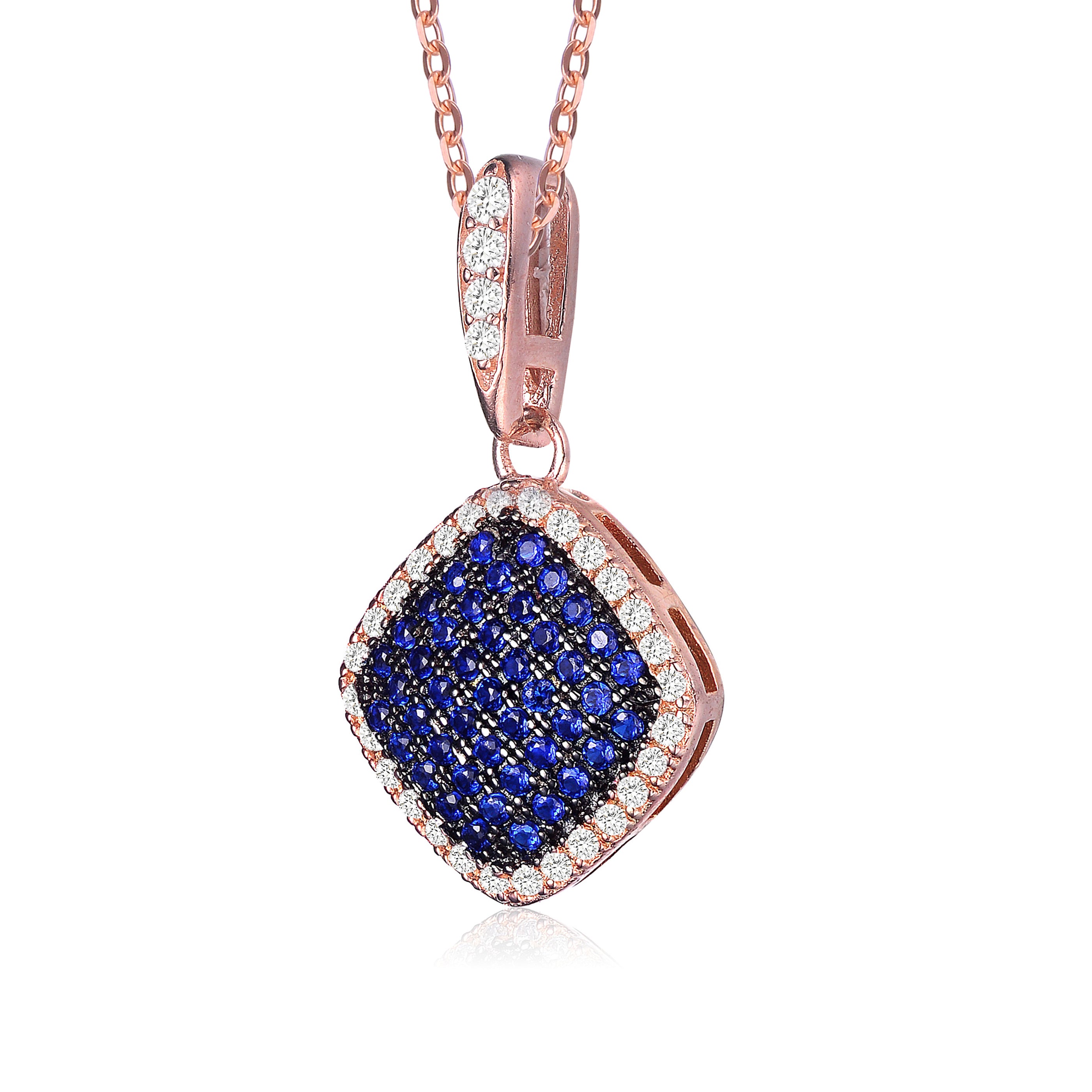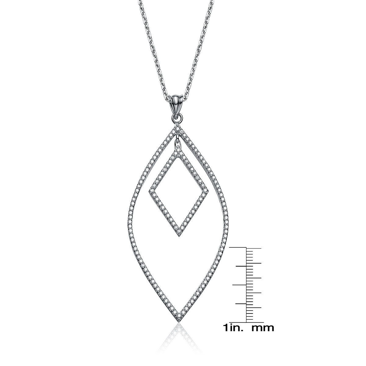 Cubic Zirconia Sterling Silver Rhodium Plated Sapphire Shape Drop Pendant