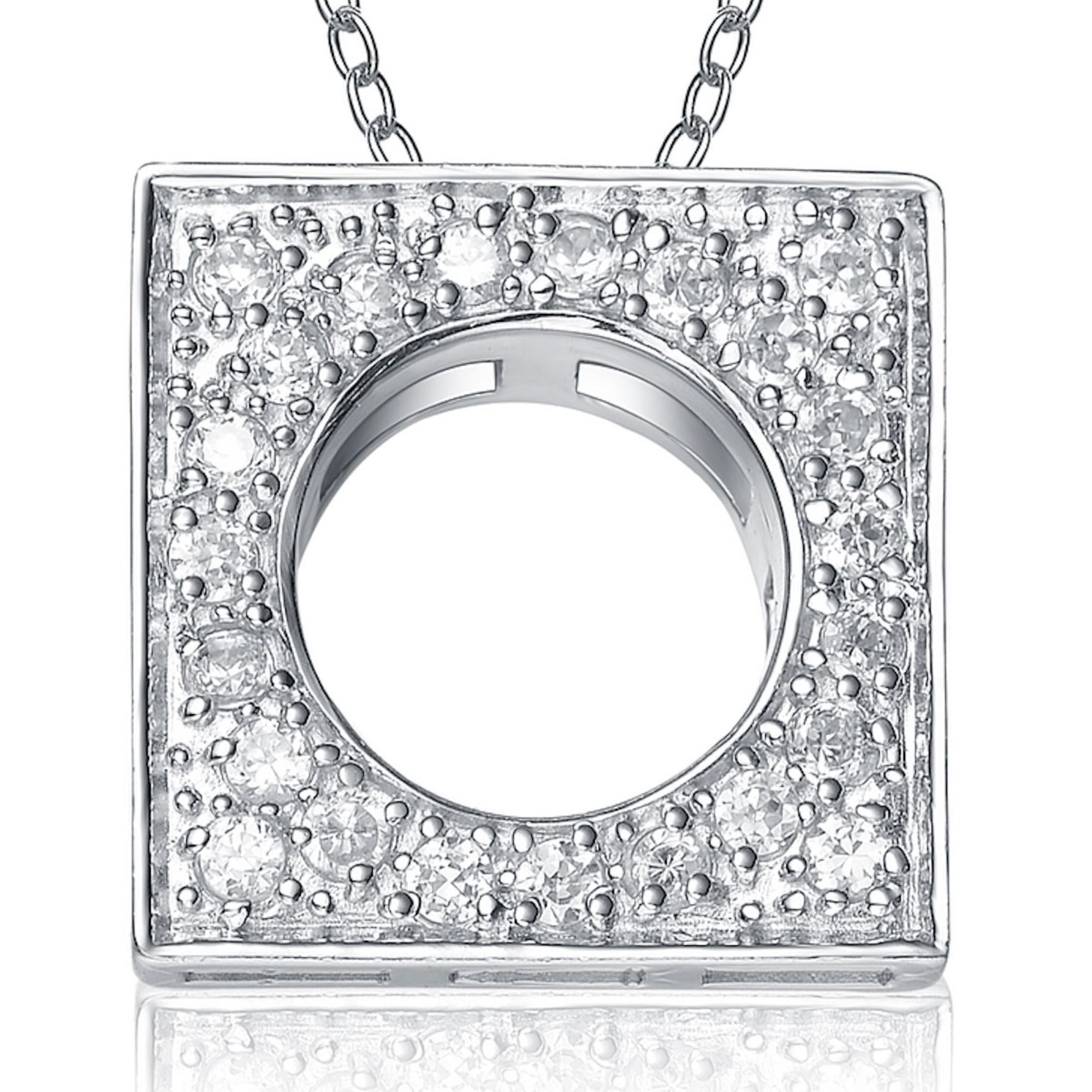 Sterling Silver Cubic Zirconia Square Circle Necklace
