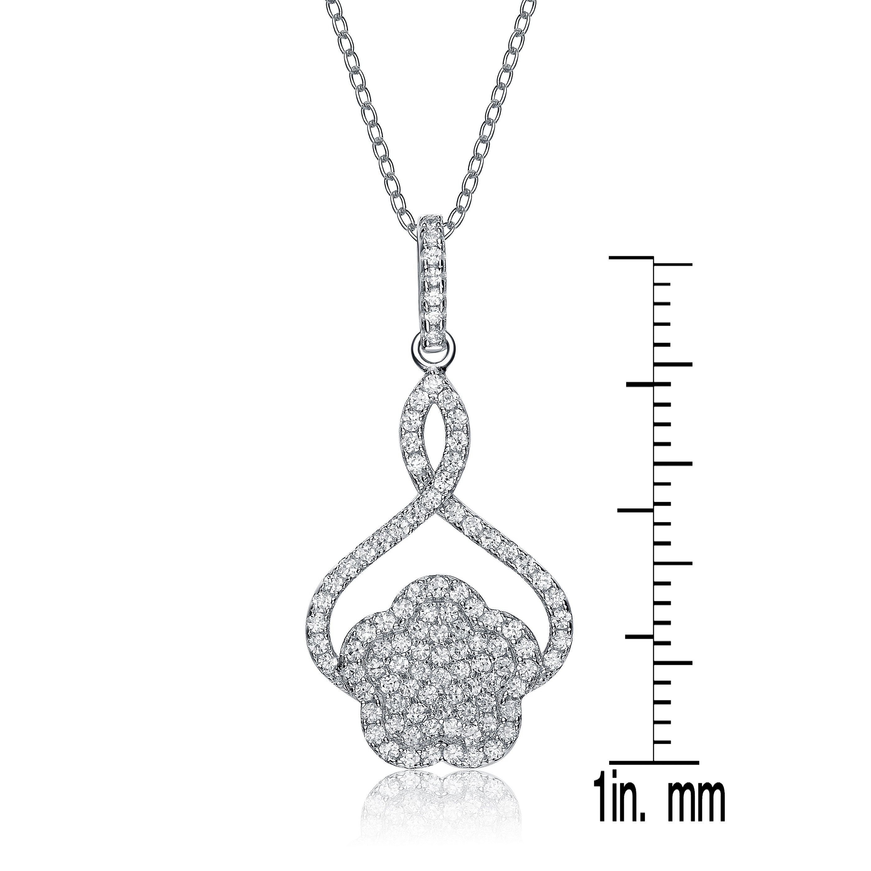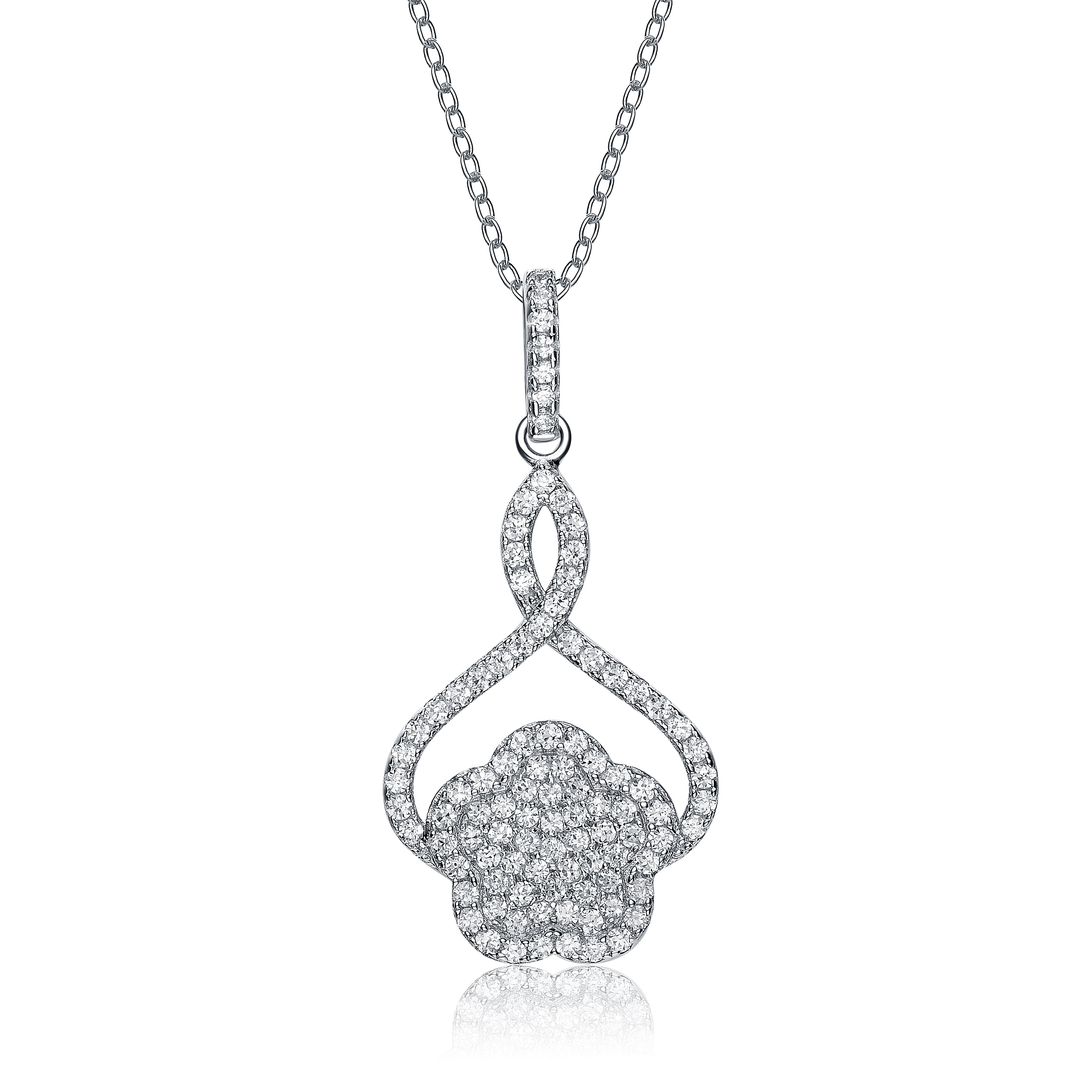 CZ SS Rhodium Plated Flower Shape Drop Pendant