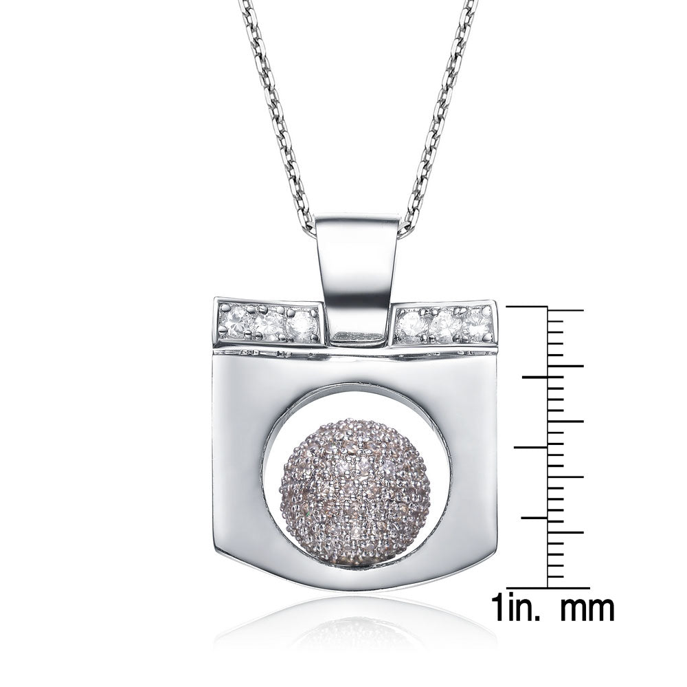 Cubic Zirconia Sterling Silver Rhodium Plated Square Lemon Ball Pendant
