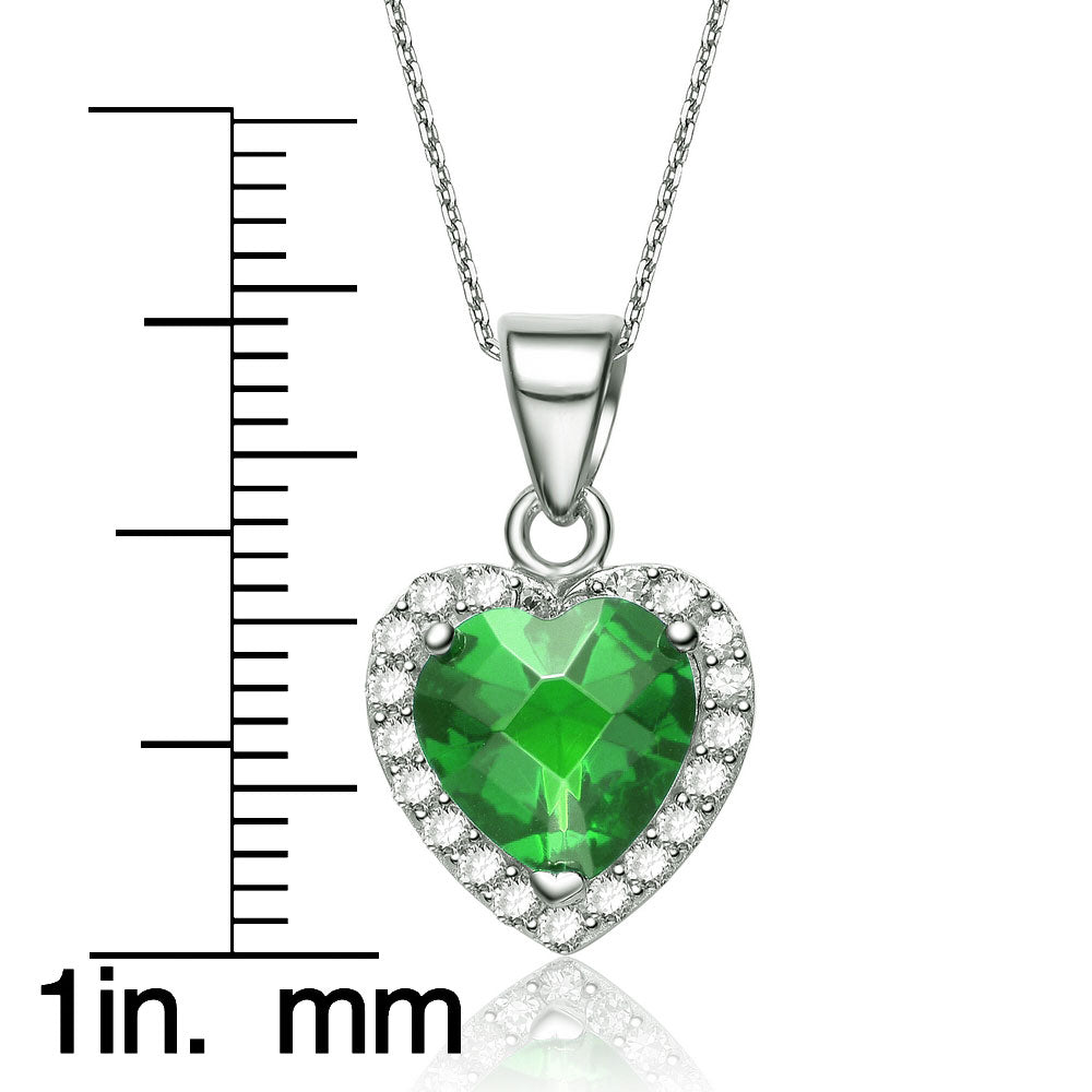 Cubic Zirconia Sterling Silver Rhodium Plated Round Sapphire Prong Set Pendant