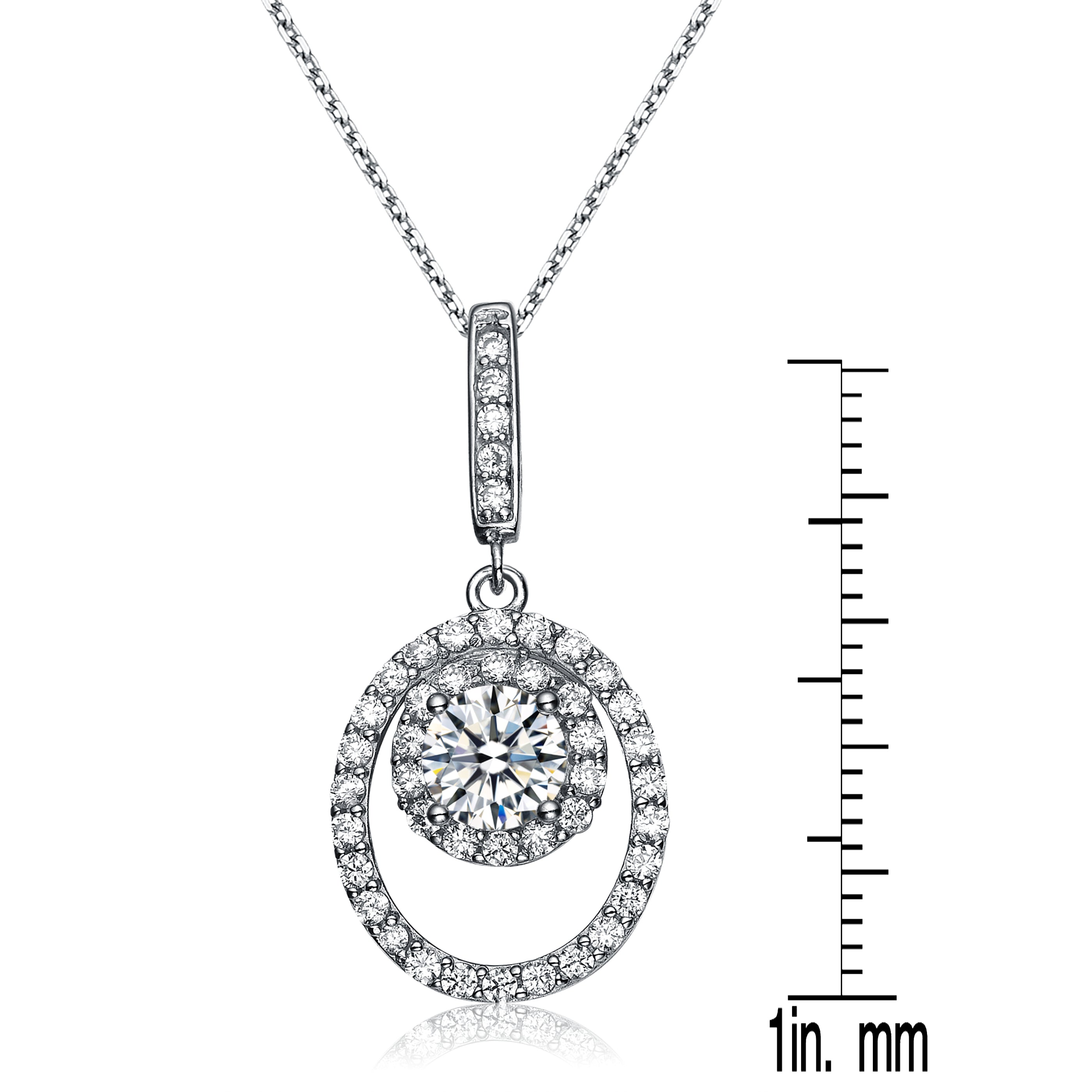 Sterling Silver Cubic Zirconia Encrusted Oval Necklace