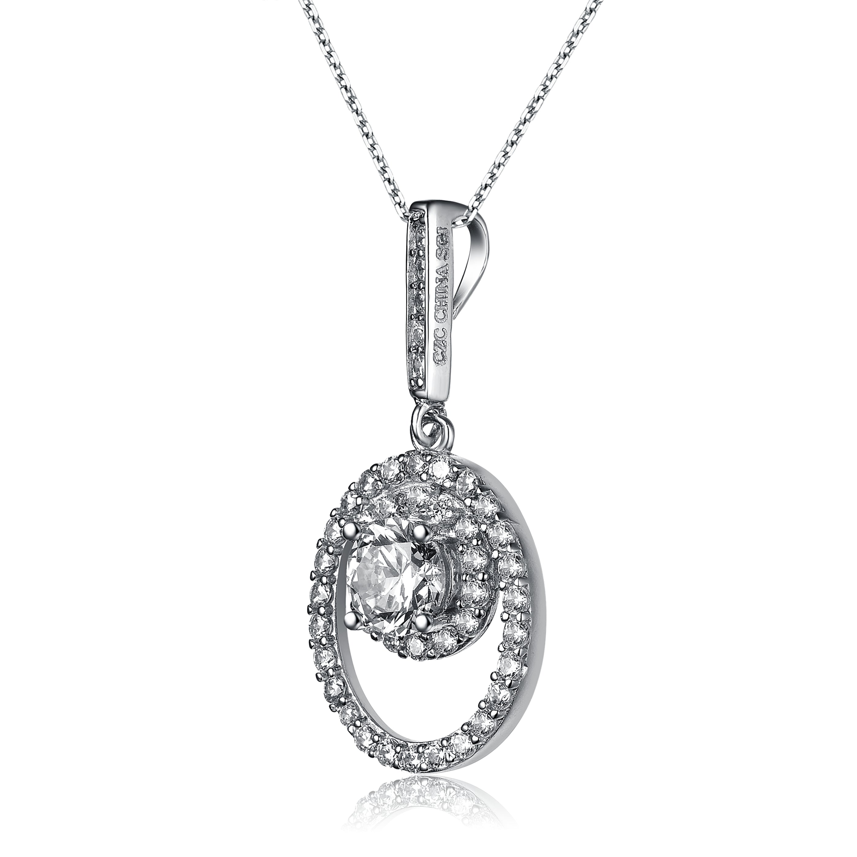 Sterling Silver White Cubic Zirconia Stones Oval Pendant