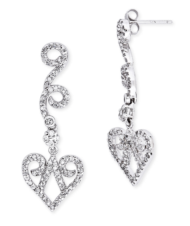 Sterling Silver Heart Cubic Zirconia Accent Dangle Earrings
