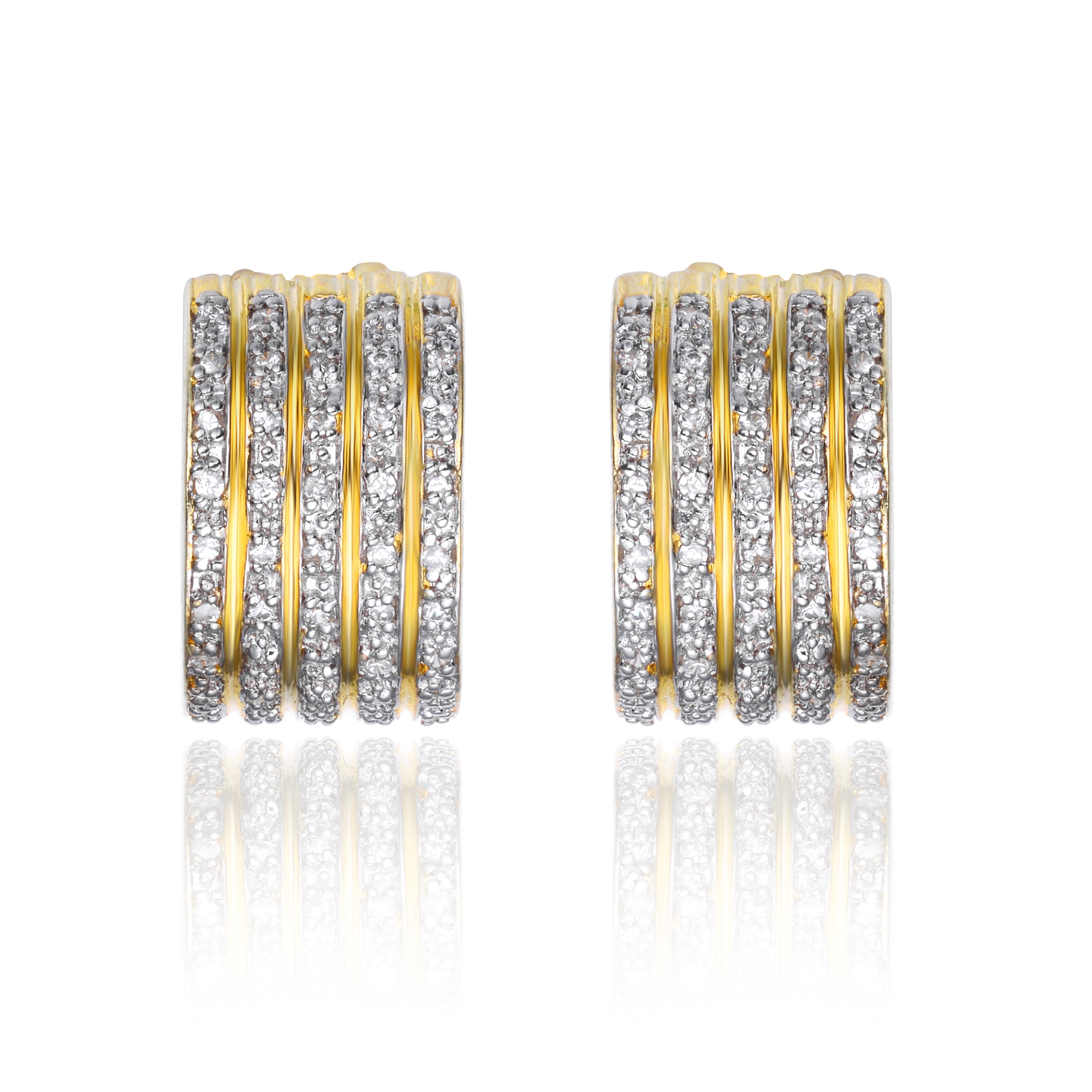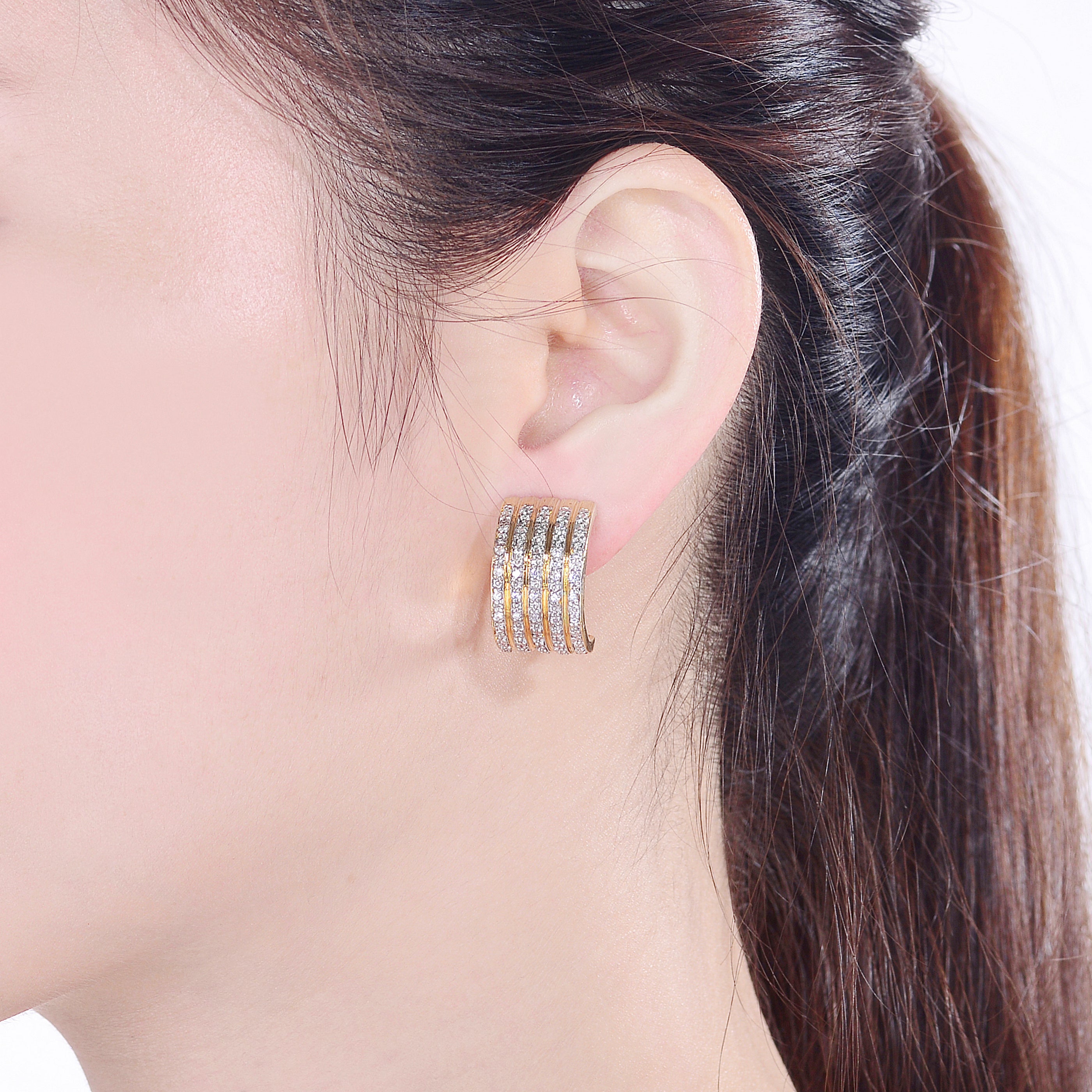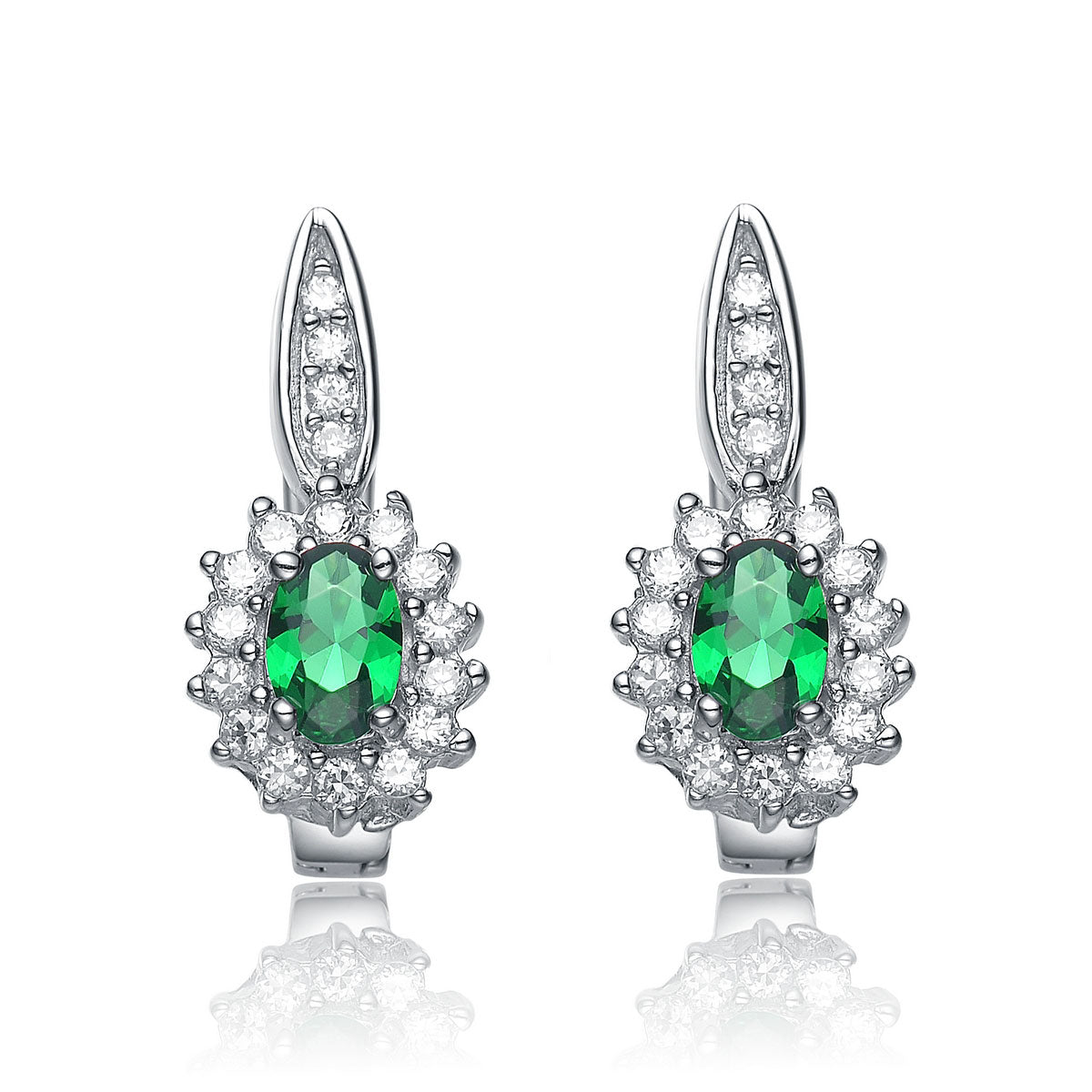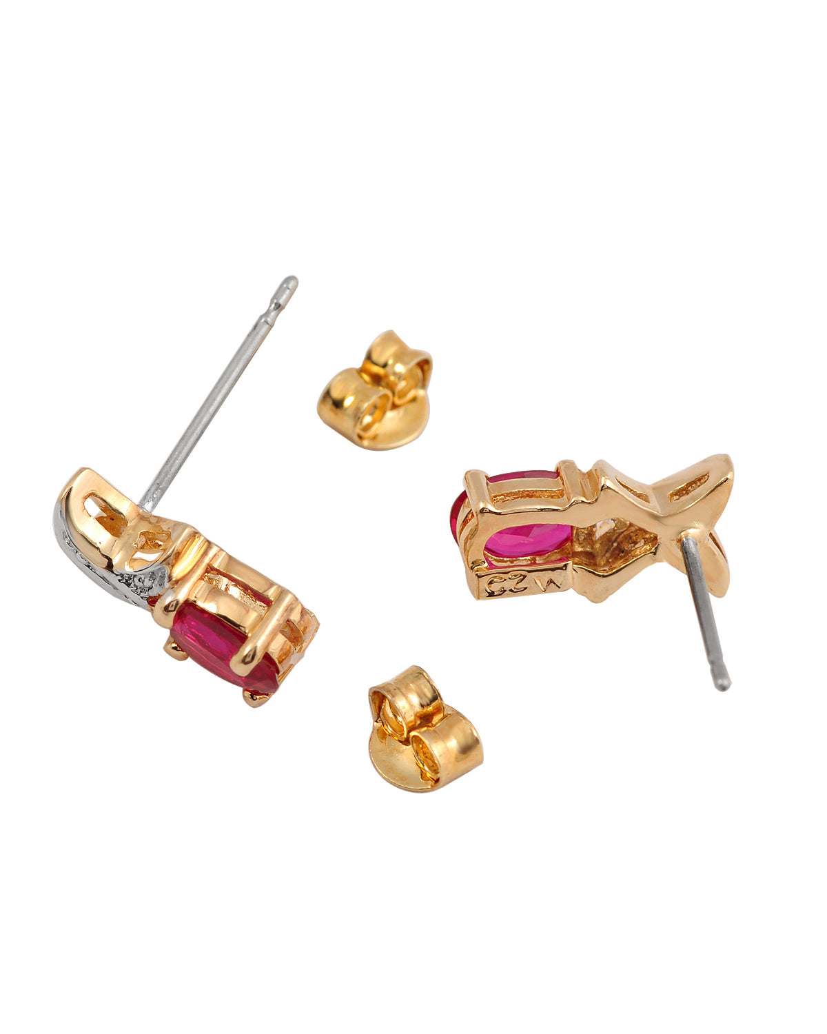 Sterling Silver Oval Gold Color Plating White Cubic Zirconia Earrings