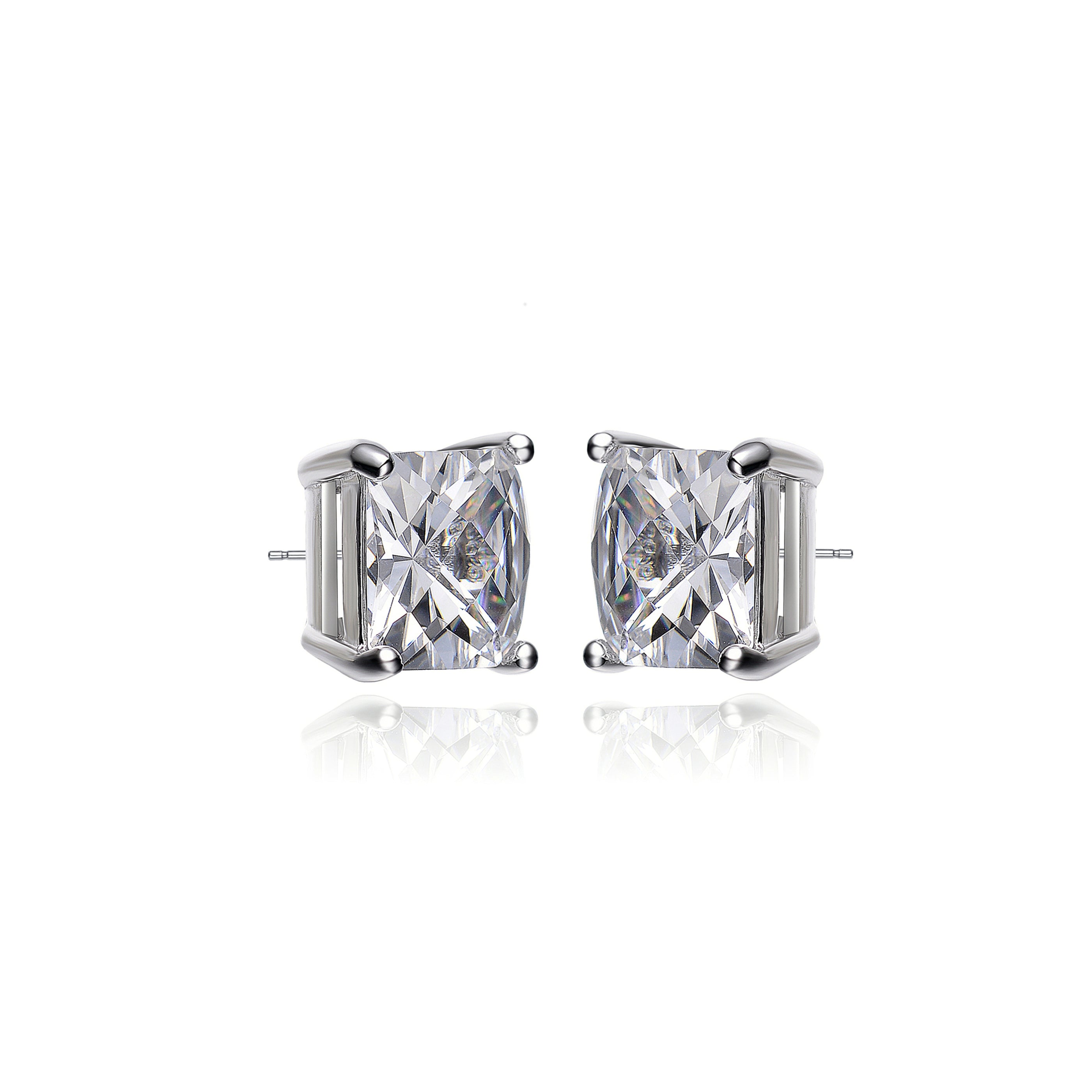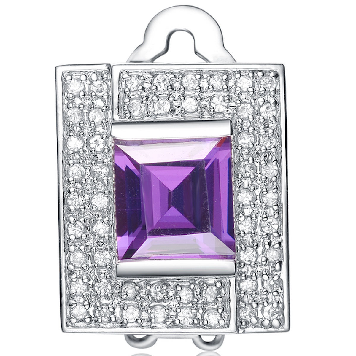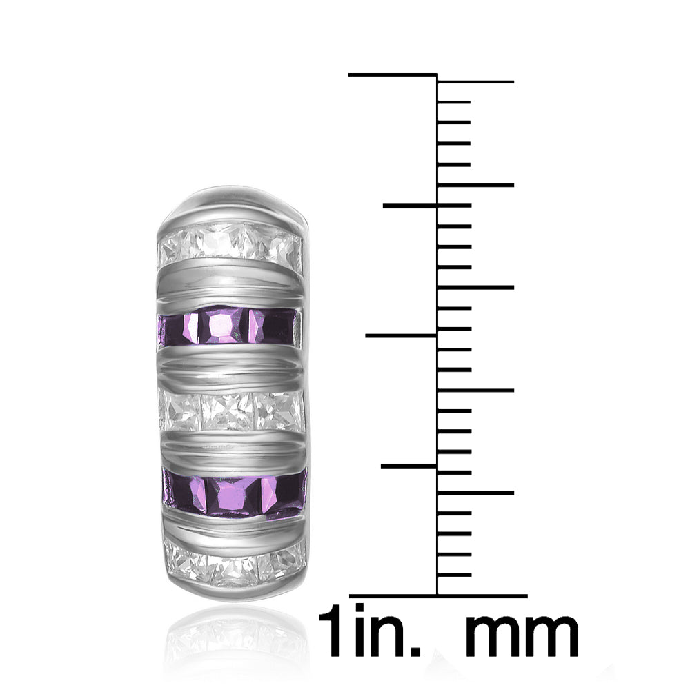 Cubic Zirconia Sterling Silver Rhodium Plated Princess Cut Amethyst Earrings
