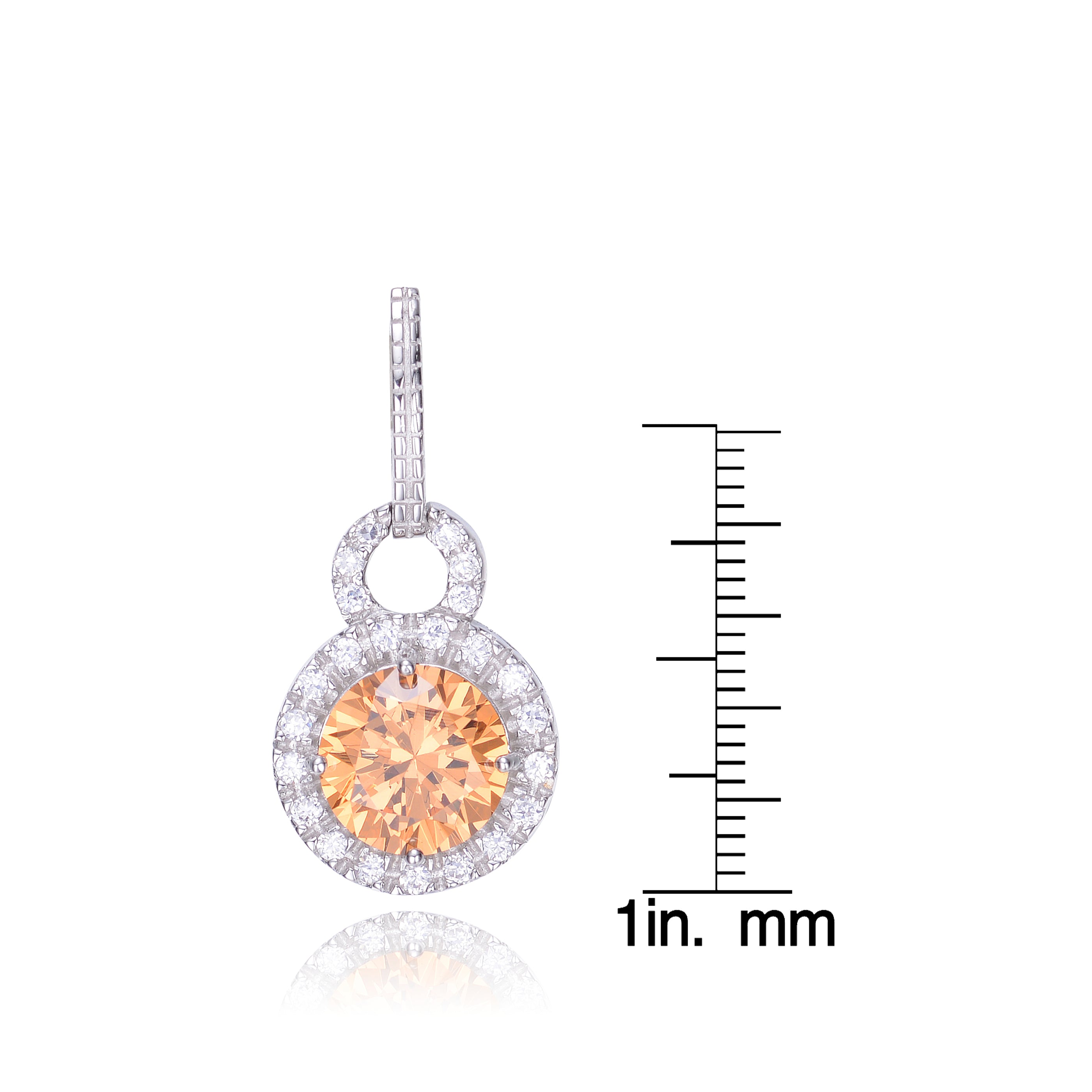Cubic Zirconia Sterling Silver Rhodium Plated Round Champagne Drop Earrings