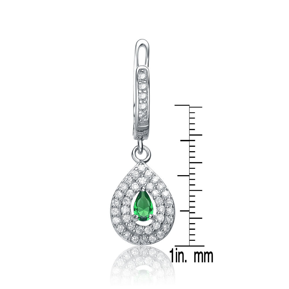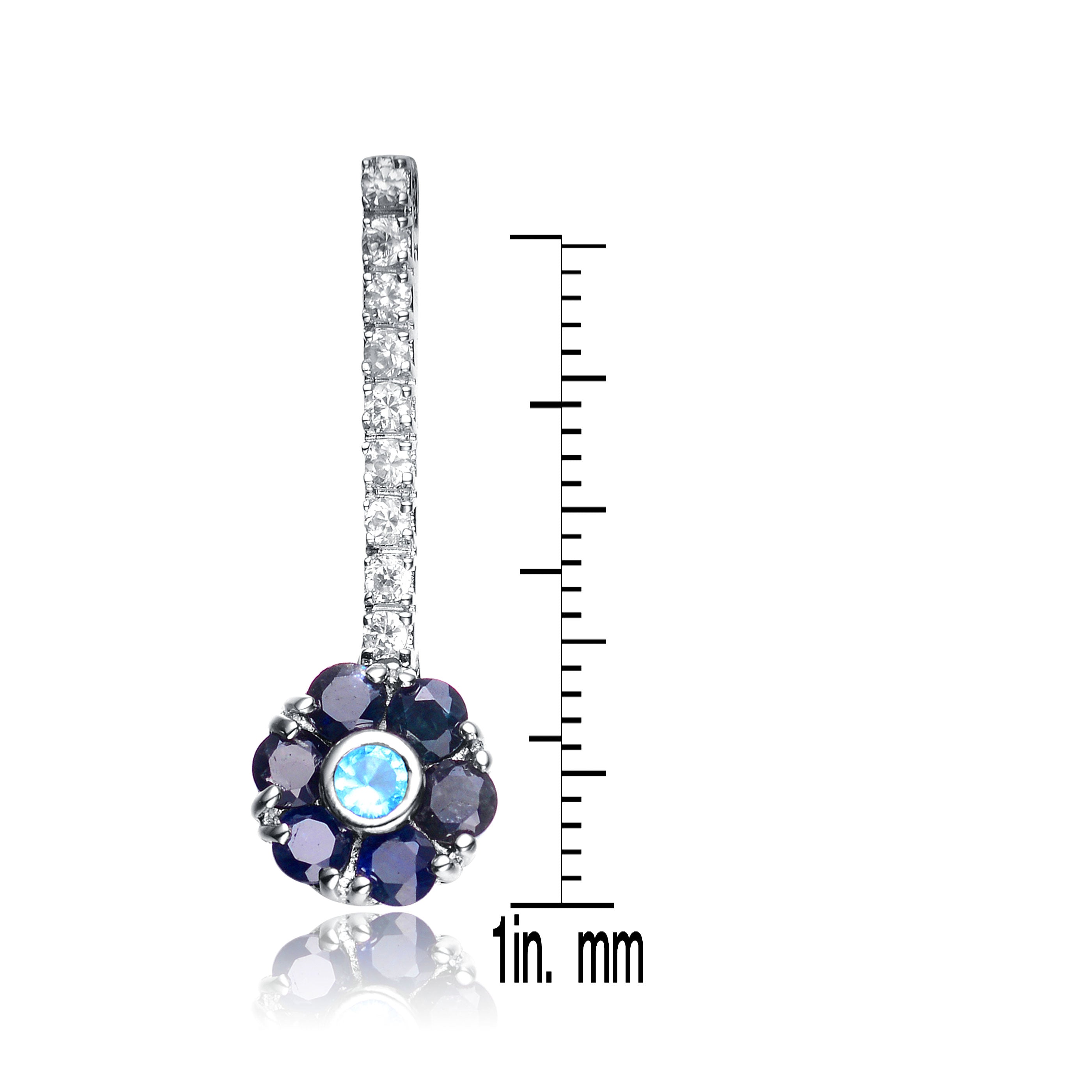 Cubic Zirconia Sterling Silver Rhodium Plated Sapphire Tear Shape Earrings