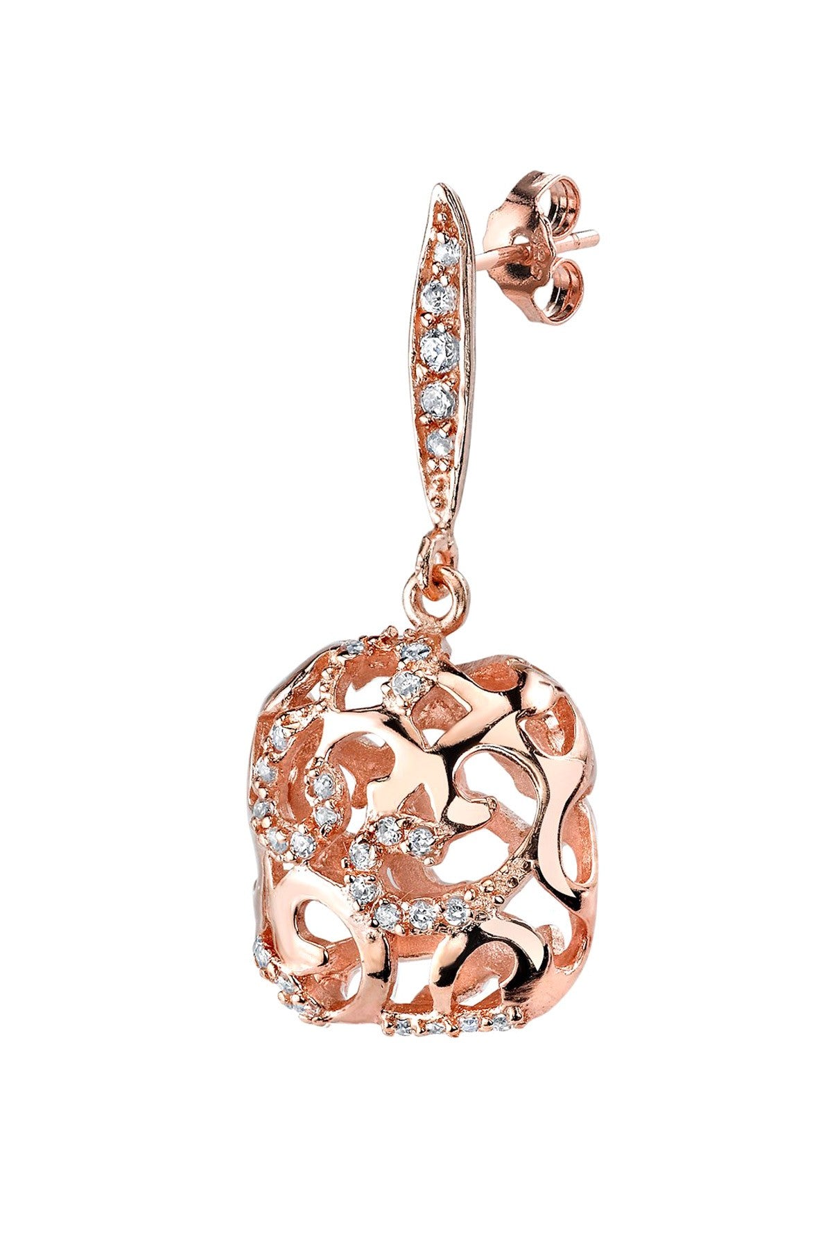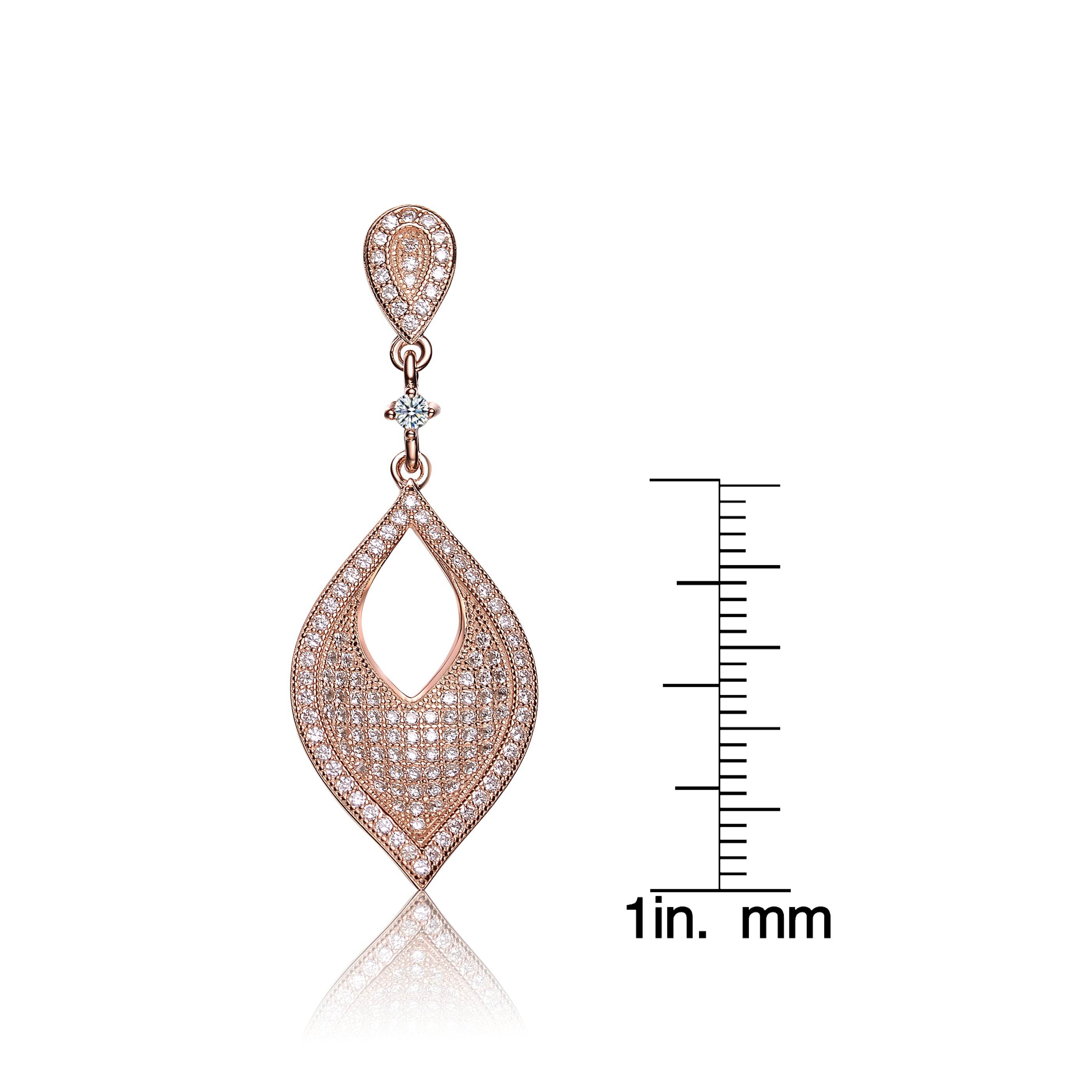 CZ SS Rose Plated Micro Pave Open Teardrop Drop Earrings