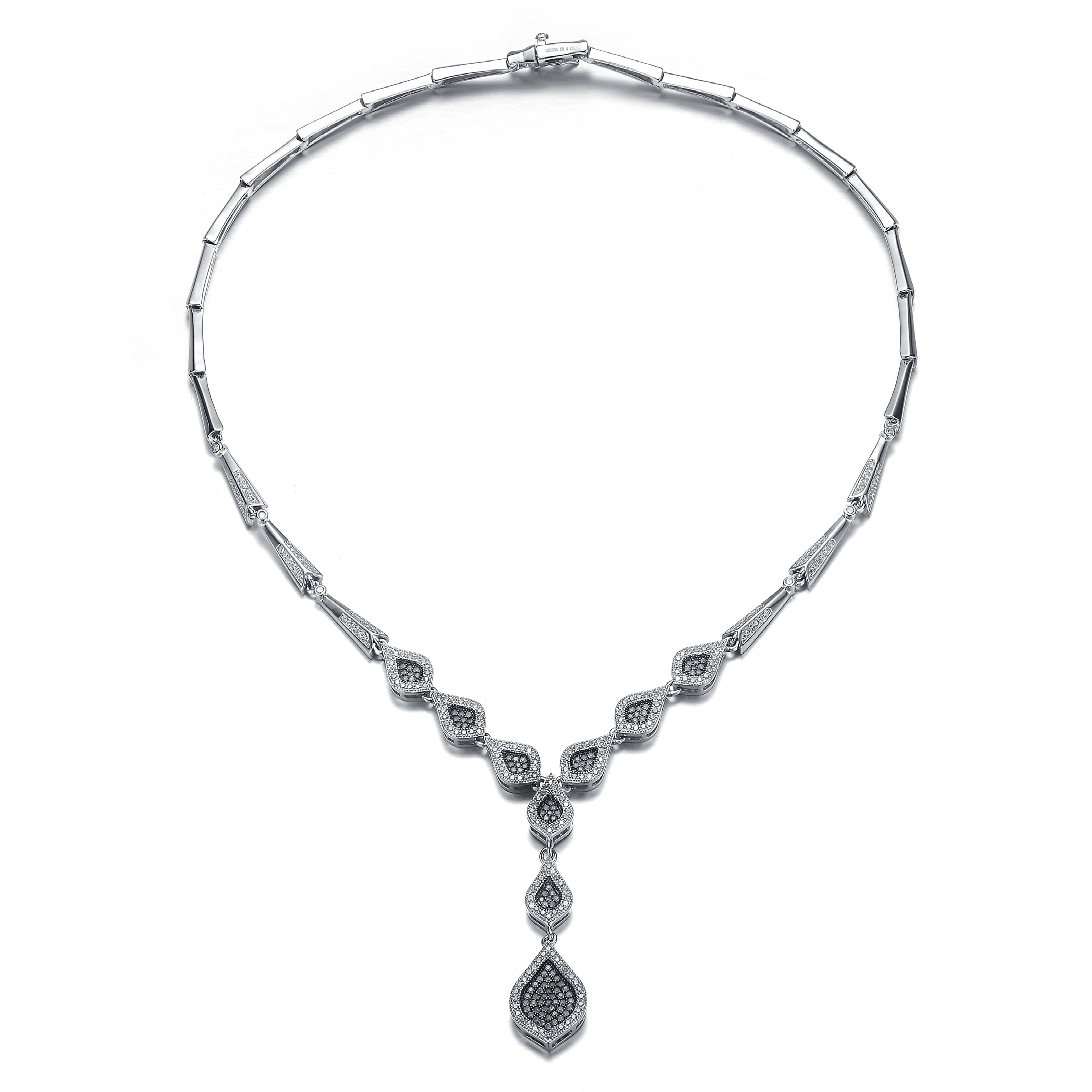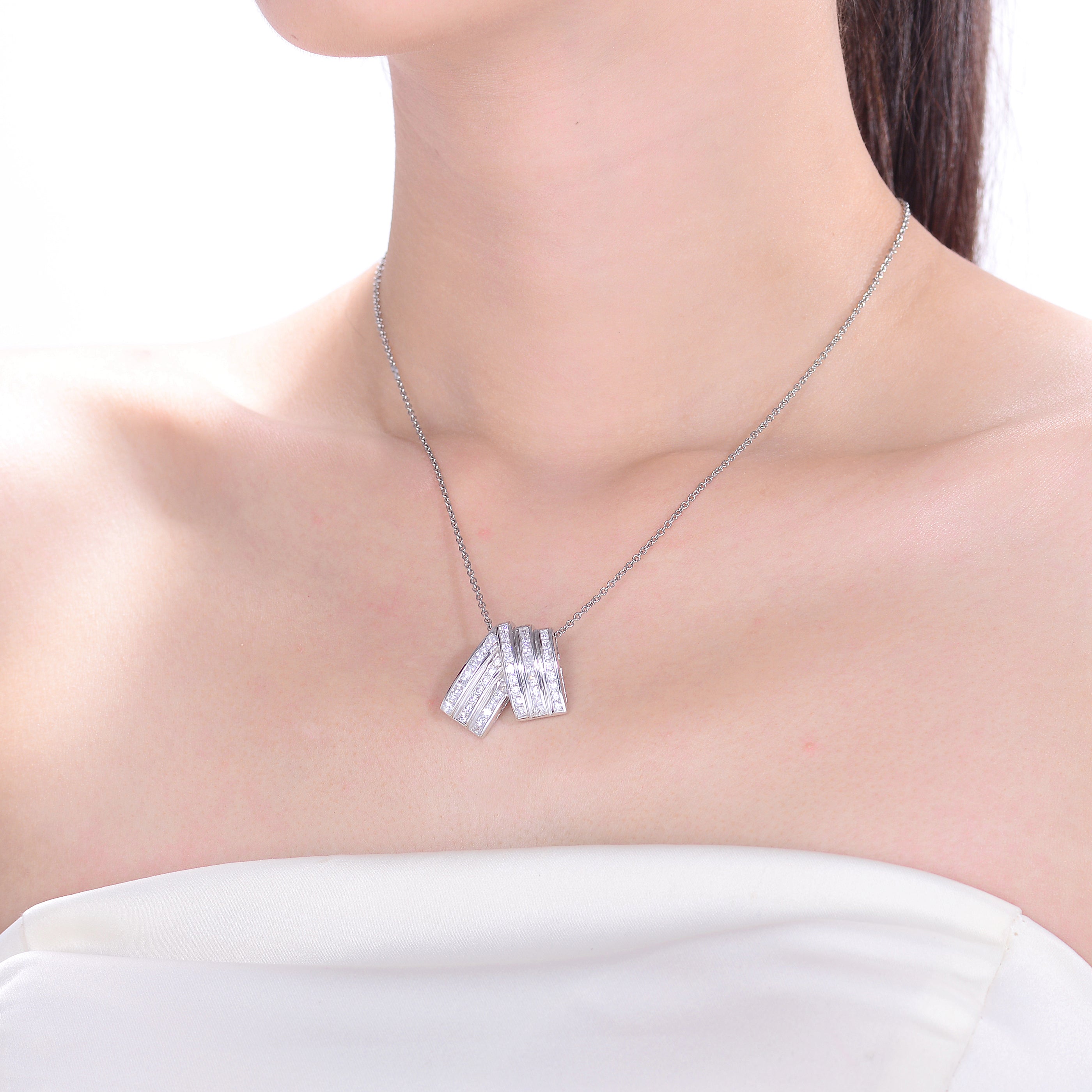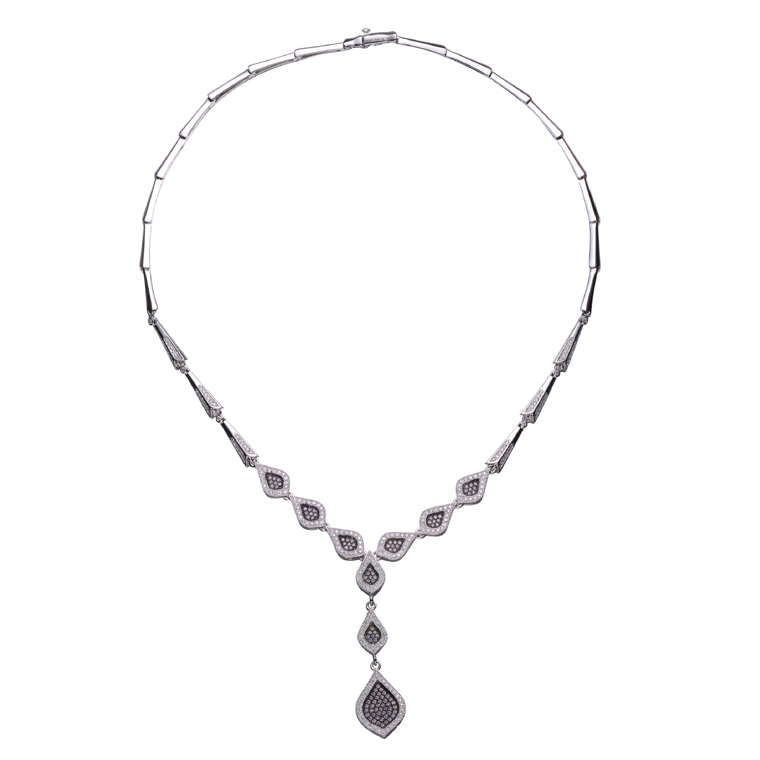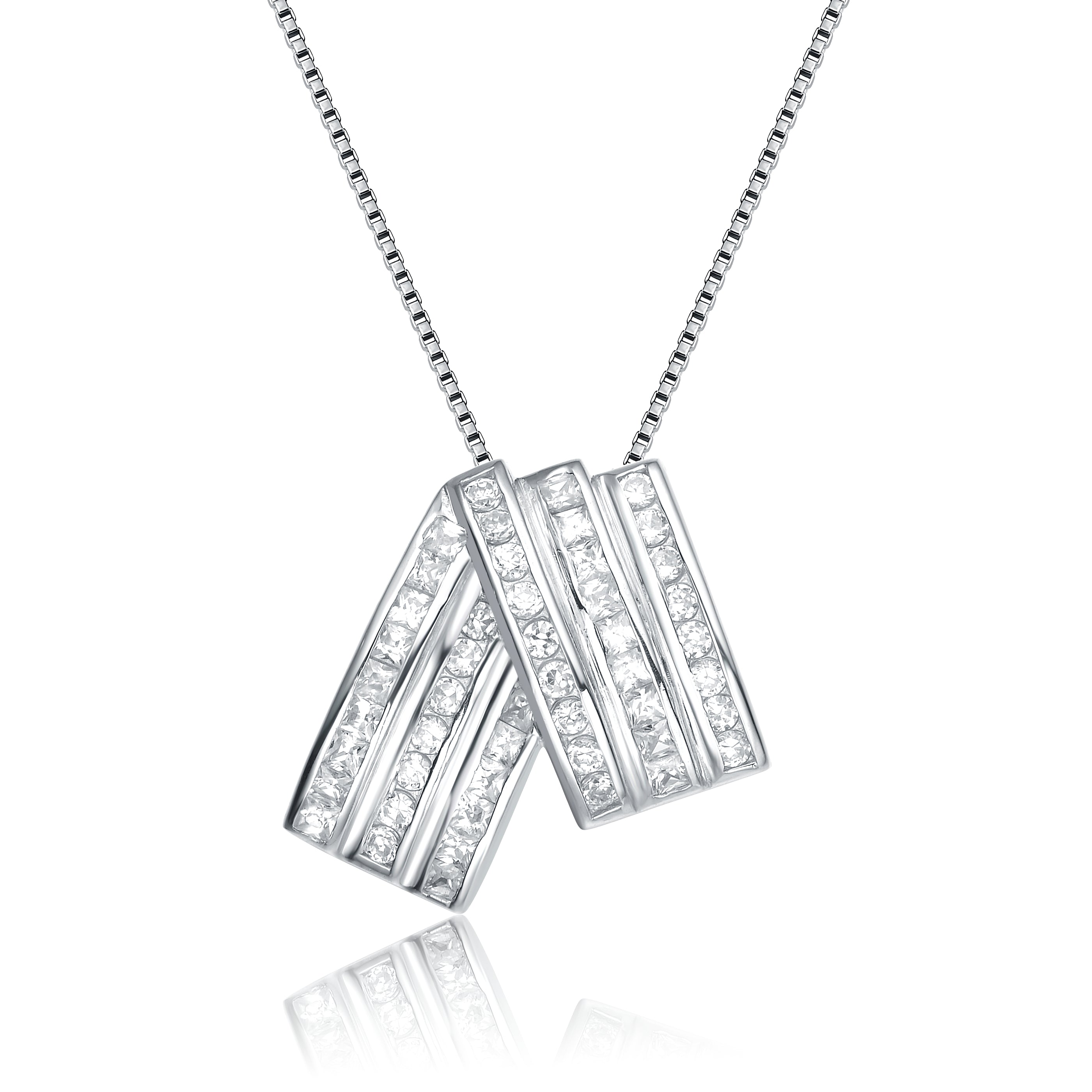 Sterling Silver White Gold Plated Cubic Zirconia Square shaped Necklace