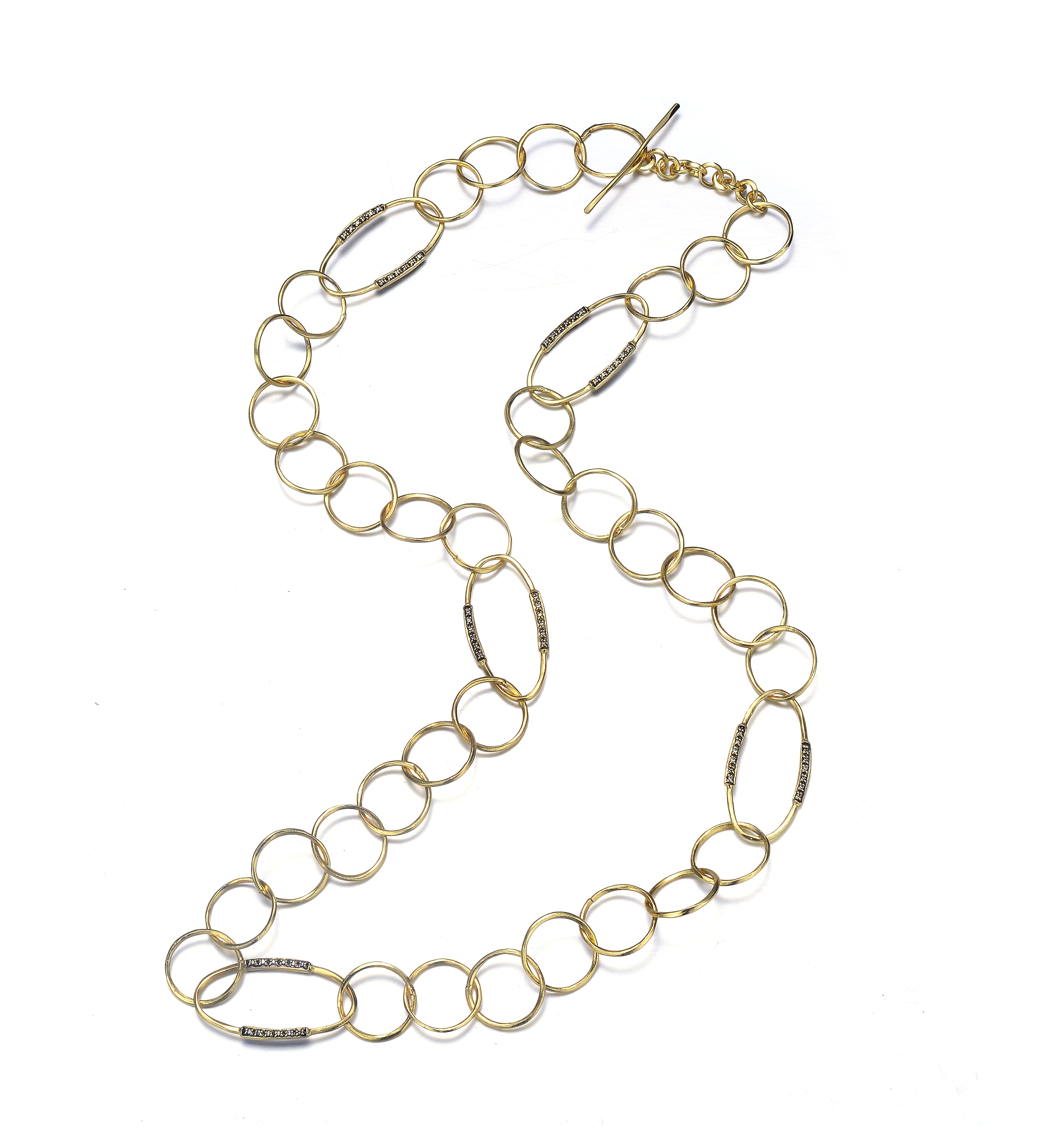 Yellow Gold Plated Round Trinkets Clear Cubic Zirconia Accent Necklace