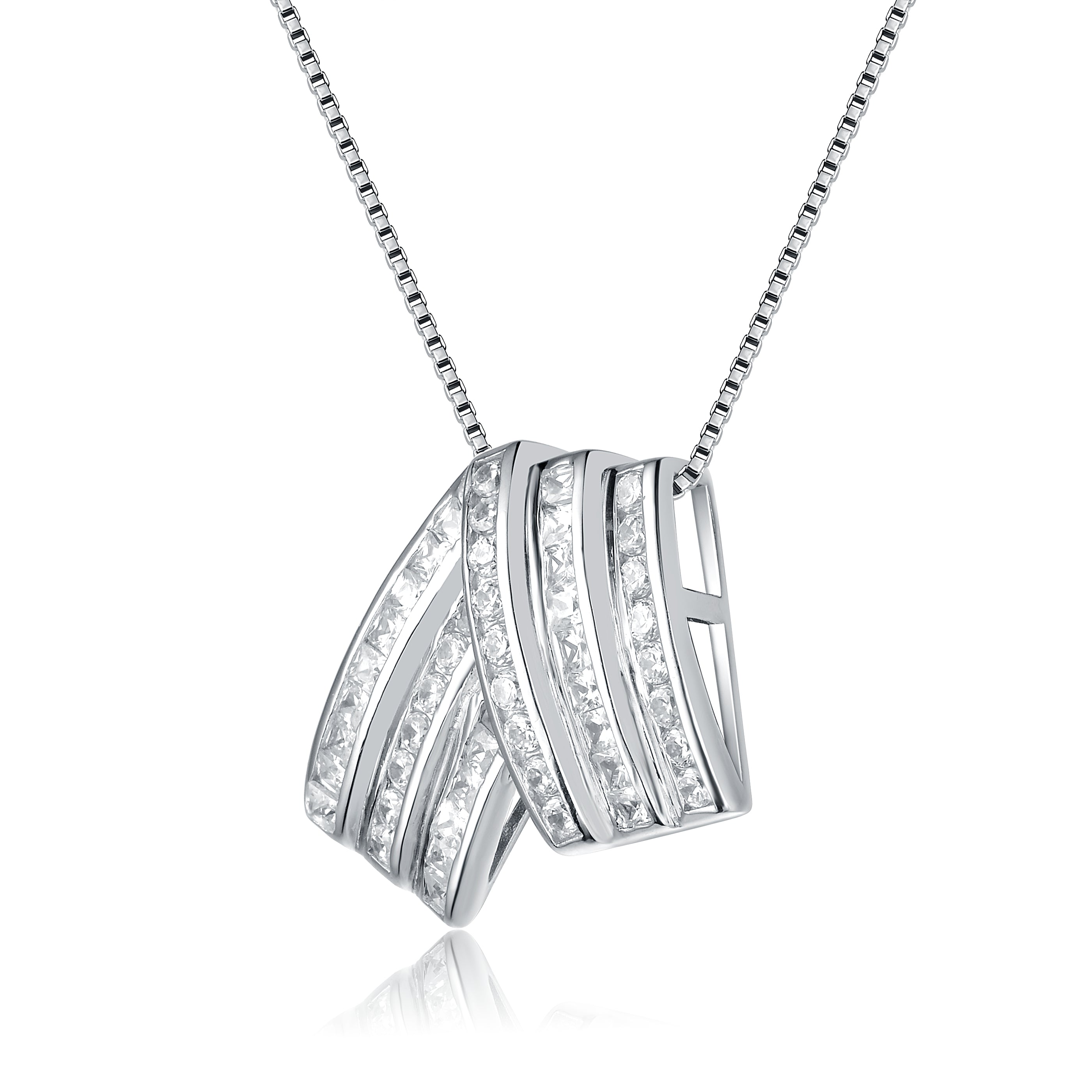 Sterling Silver White Cubic Zirconia Heart With Swirl Pendant