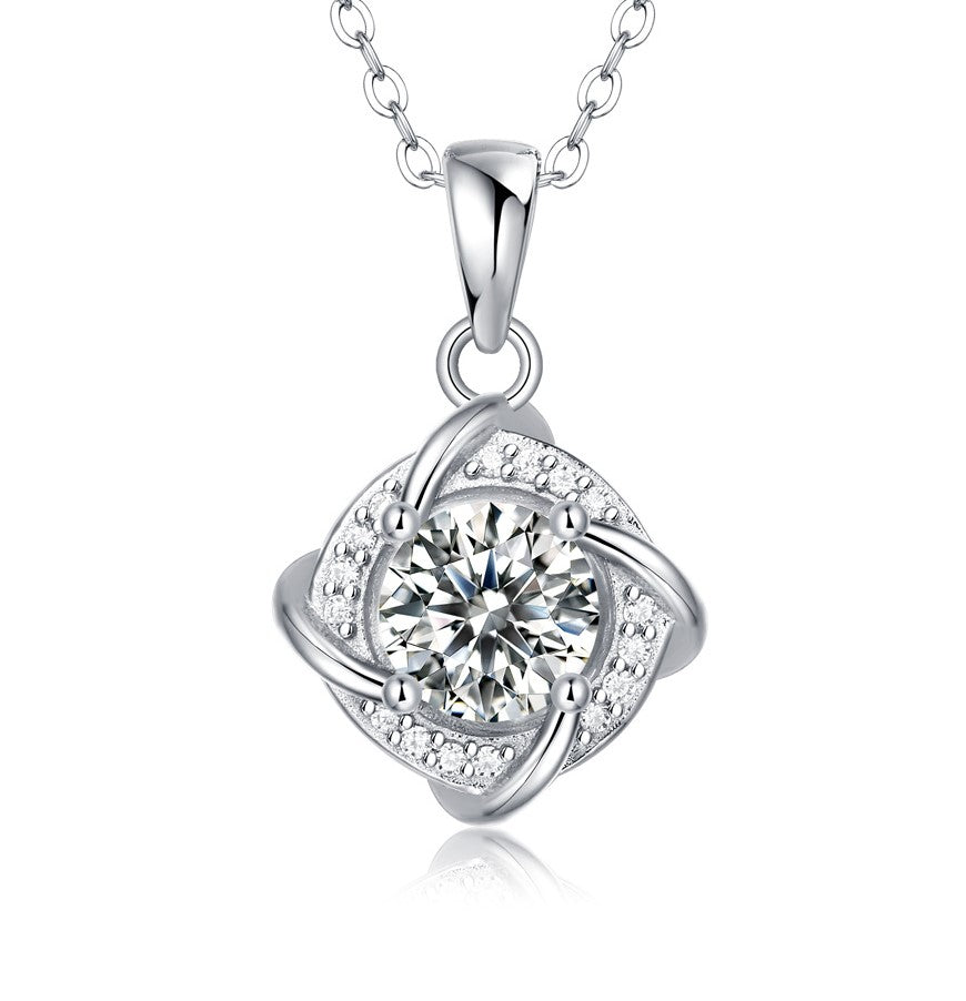 Sterling Silver with 1ct Round Moissanite Solitaire Flower Swirl Pendant Necklace