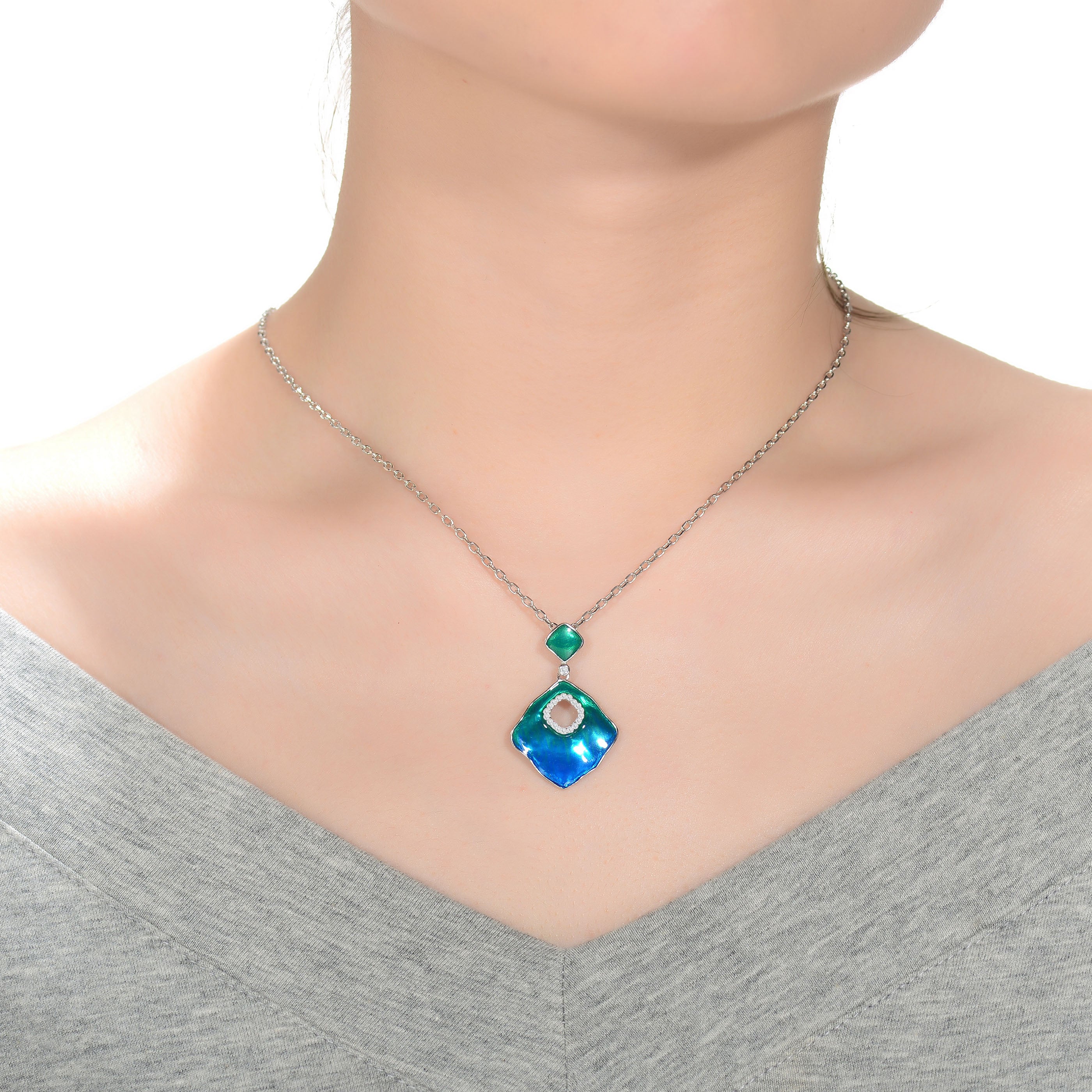 Anne Blue-Green Enamel Necklace