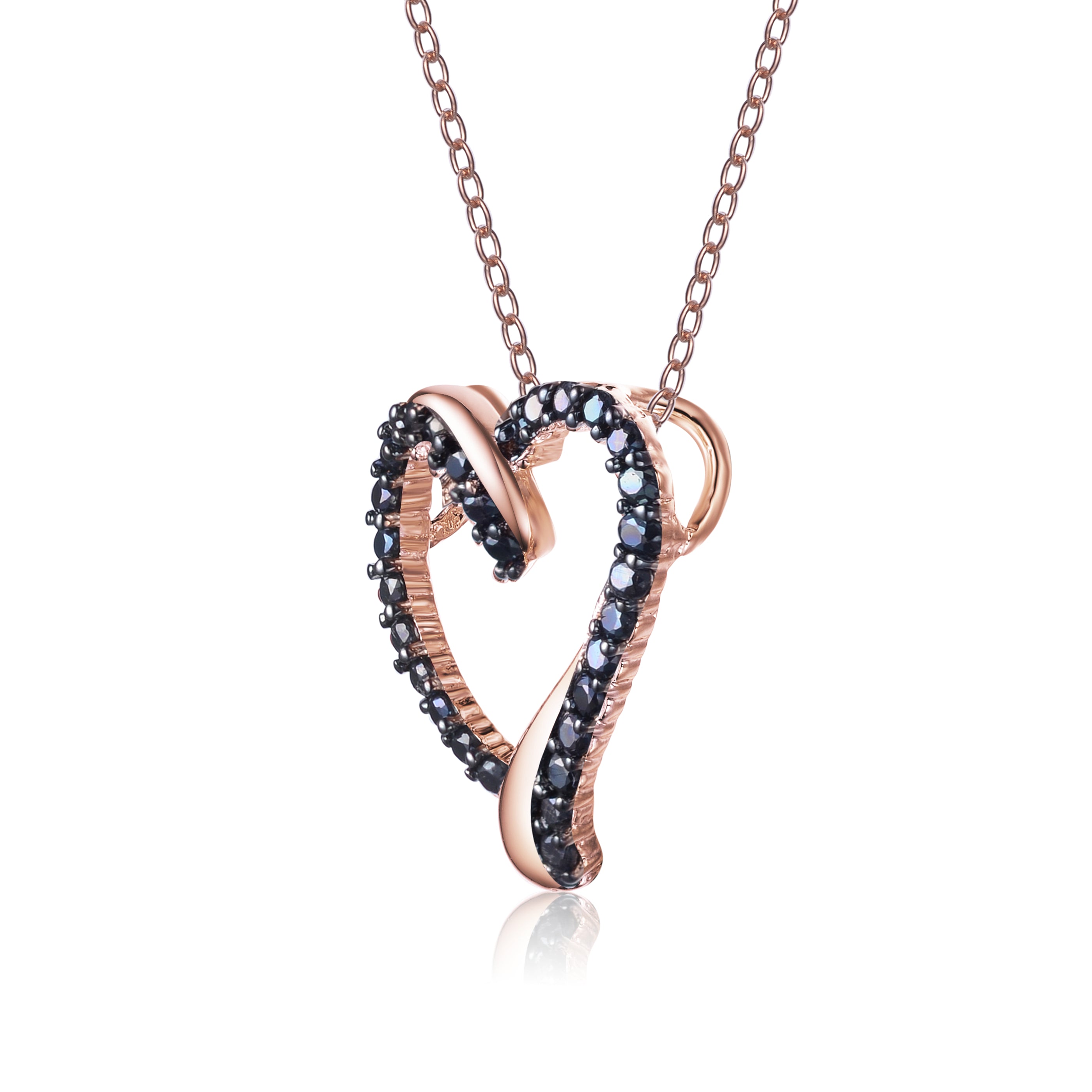 Rose and Black-plated Sterling Silver Cubic Zirconia Double Heart Necklace