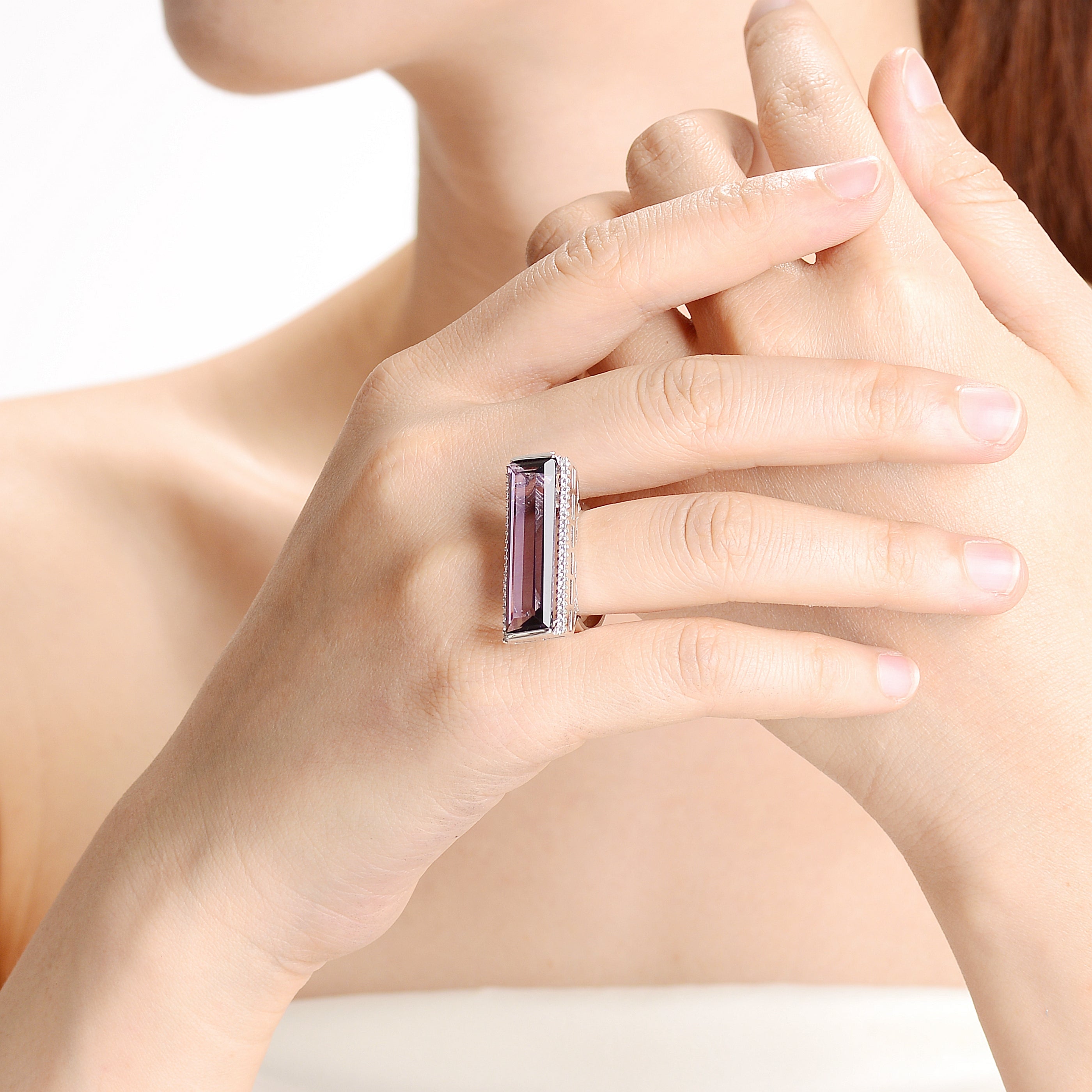 Rhodium-Plated Amethyst and Cubic Zirconia Ring