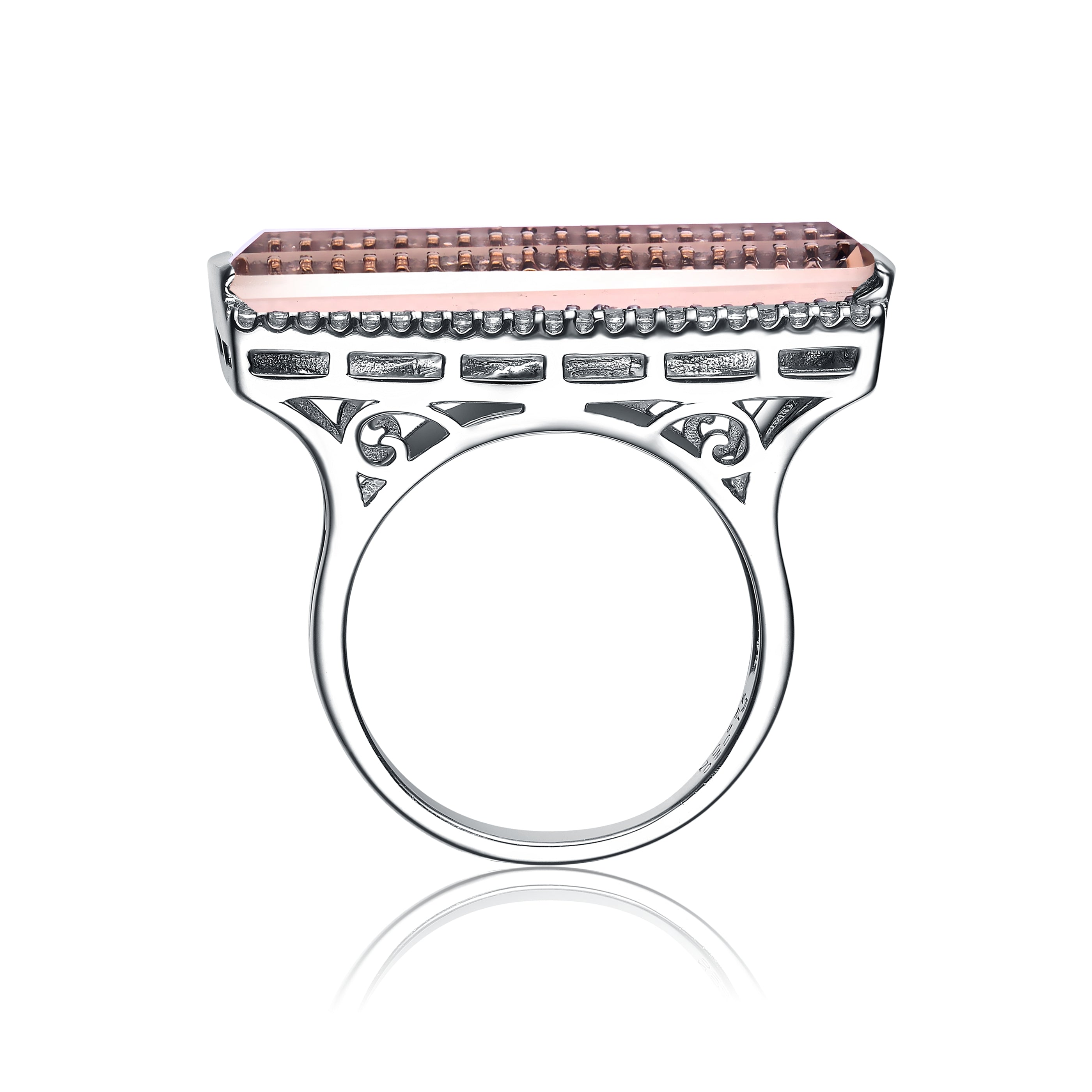 Peach and White Cubic Zirconia Rose Gold Plated Sterling Silver Square Shaped Ring