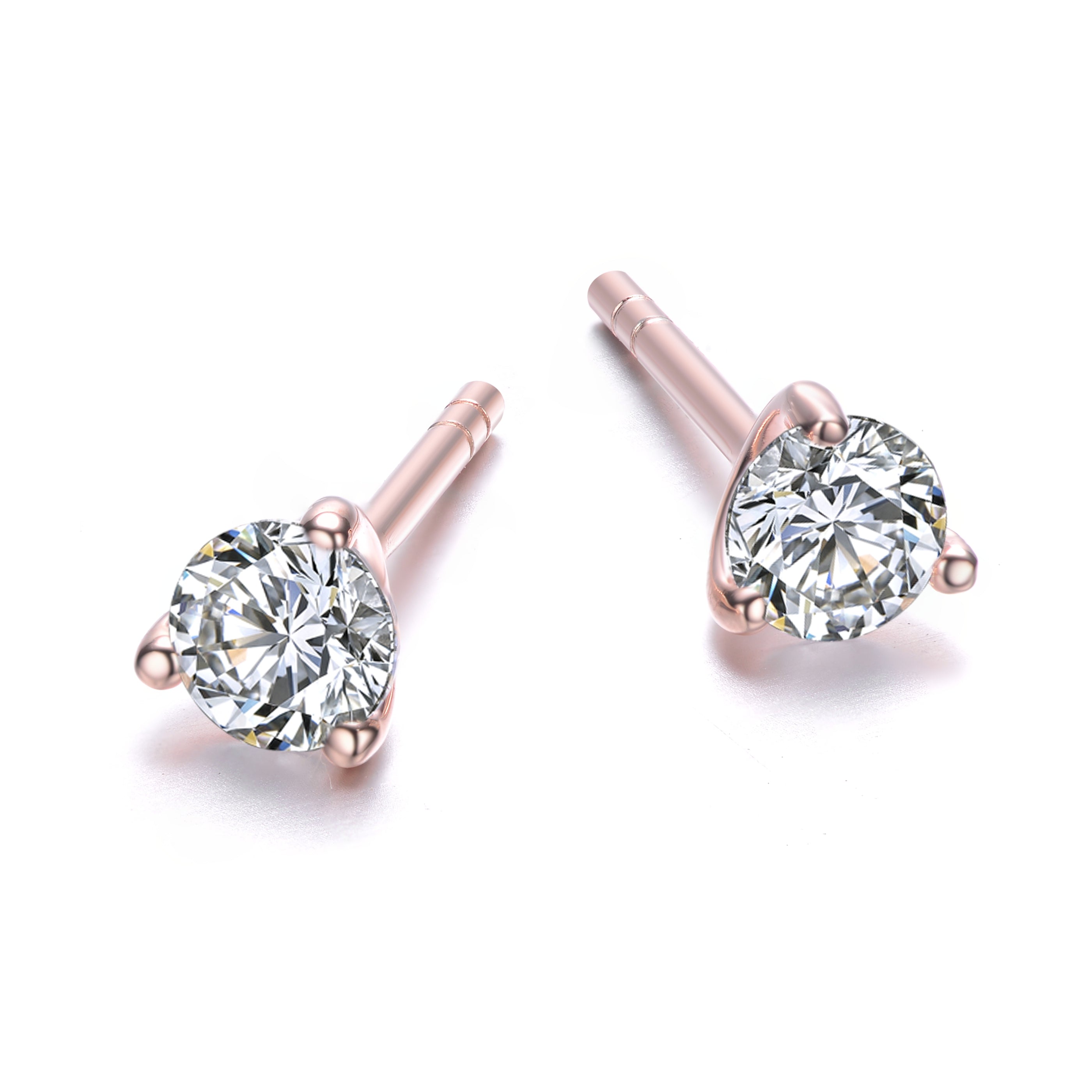 Rose Gold Overlay Cubic Zirconia Six Petal Flower Earrings