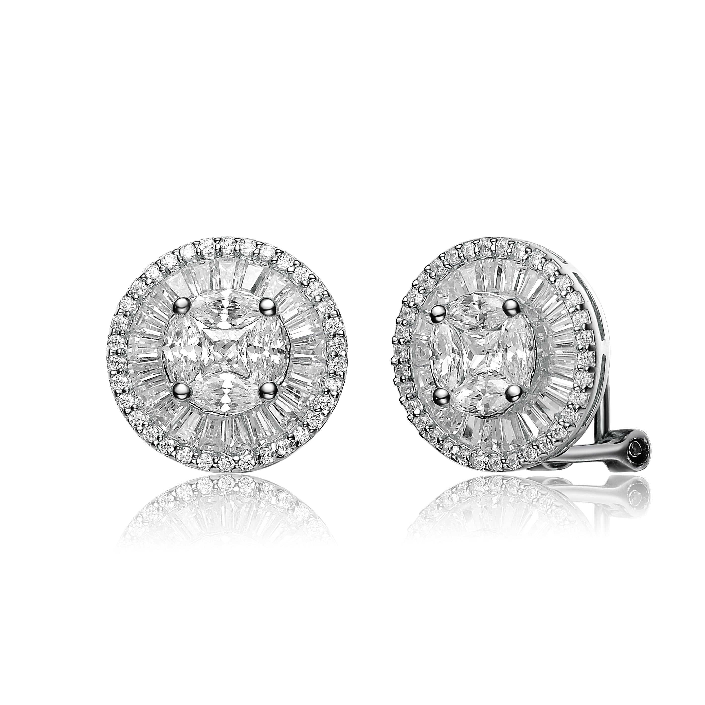 Sterling Silver Cubic Zirconia Circle Chandelier Earrings