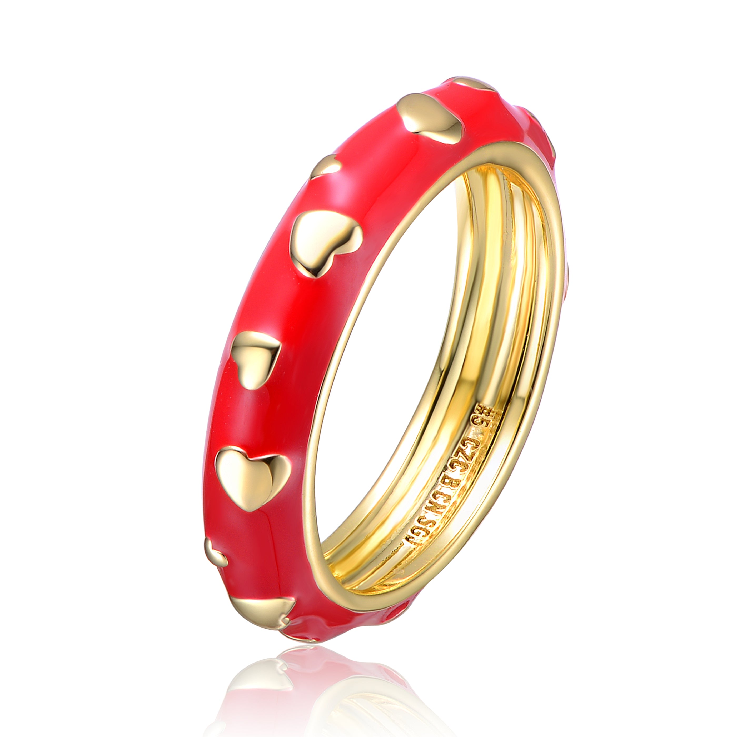 Sterling Silver 14k Yellow Gold Plated Red Enamel Heart Stacking Band