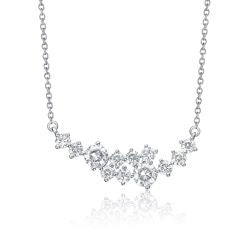 Sterling Silver White Gold Plated with Clear Moissanite Graduated Cluster Necklace
