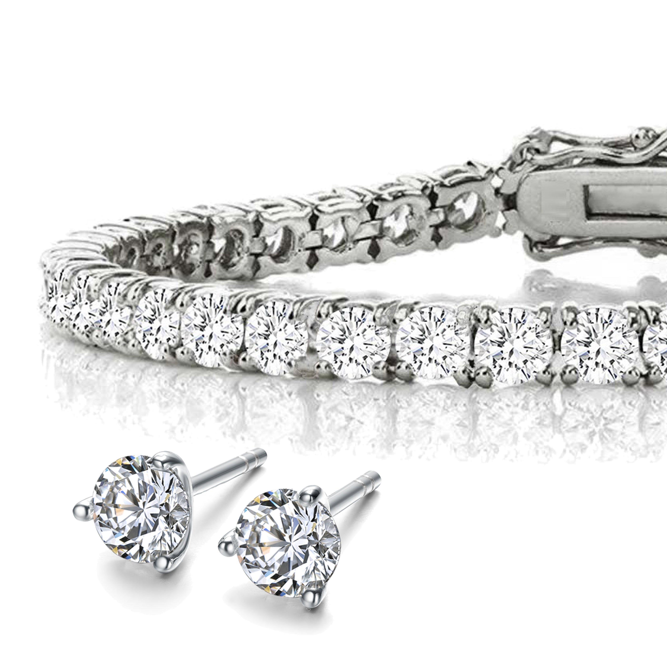 Radiant Harmony Exclusive Jewelry Set: Tennis Bracelet & Classic Solitaire Earrings