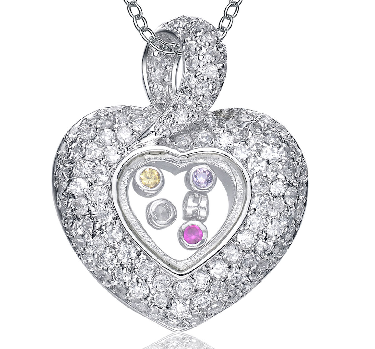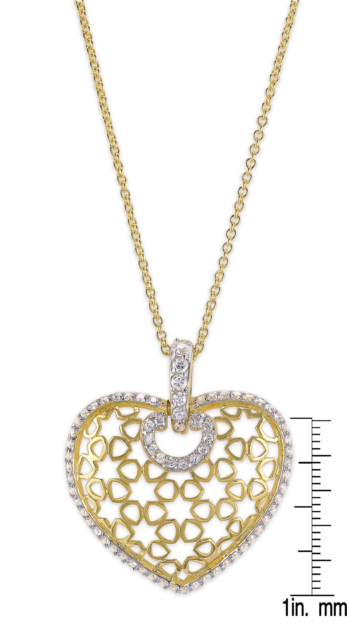 C.Z. Sterling Silver Two Tone Heart Shape Lace Pendant