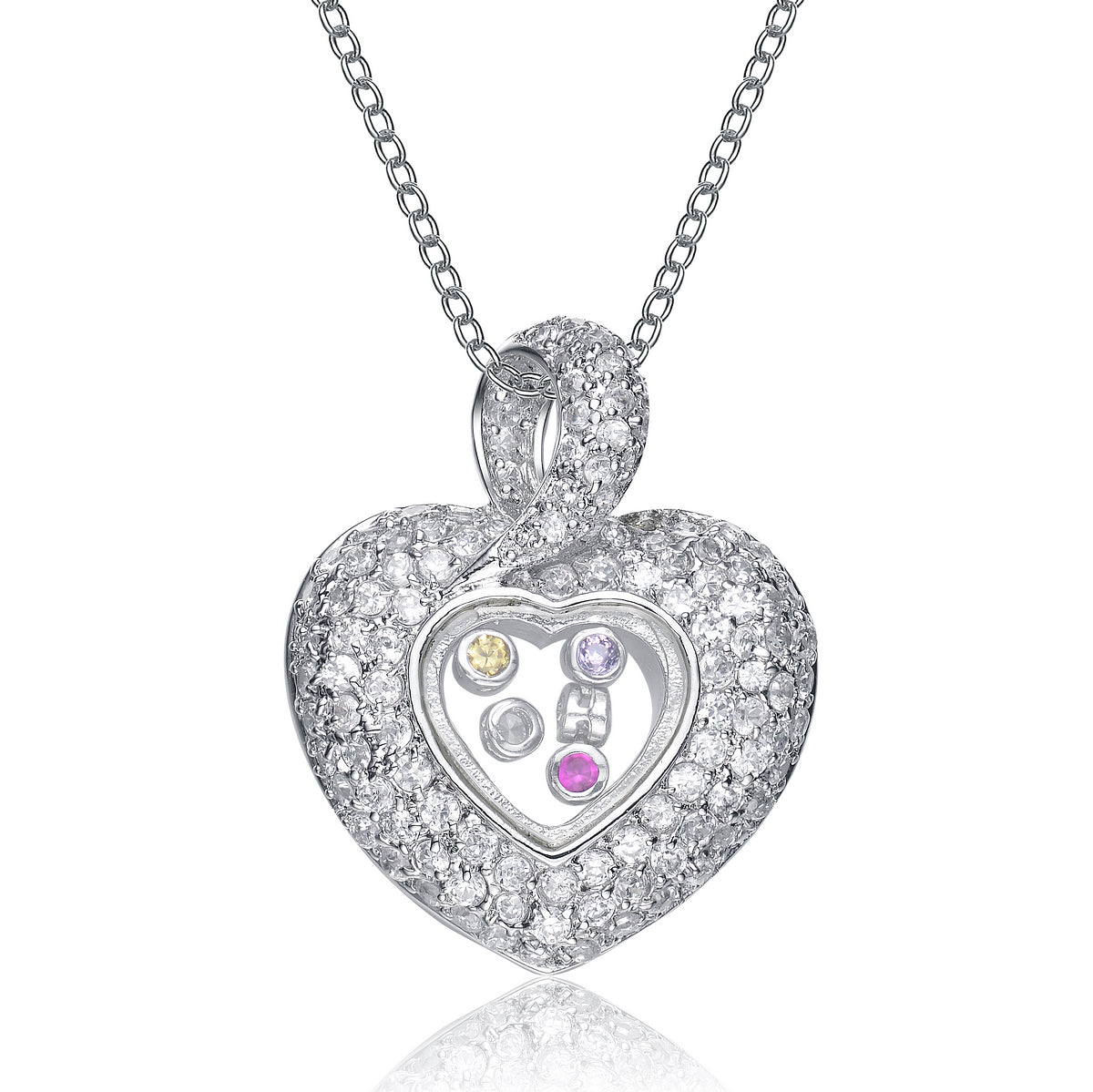 Sterling Silver Clear Cubic Zirconia Heart and Star Necklace