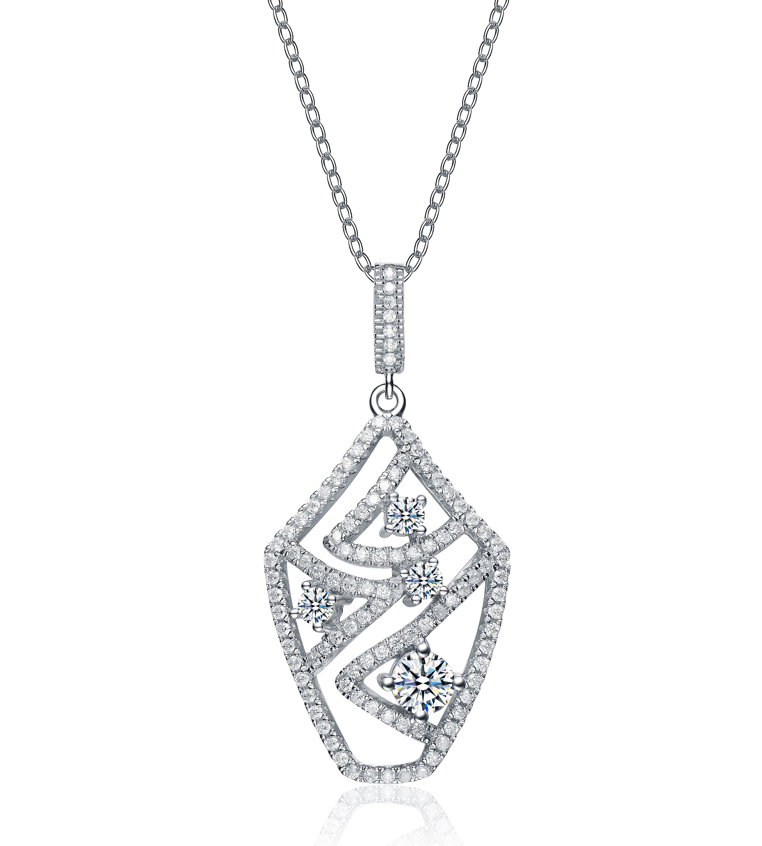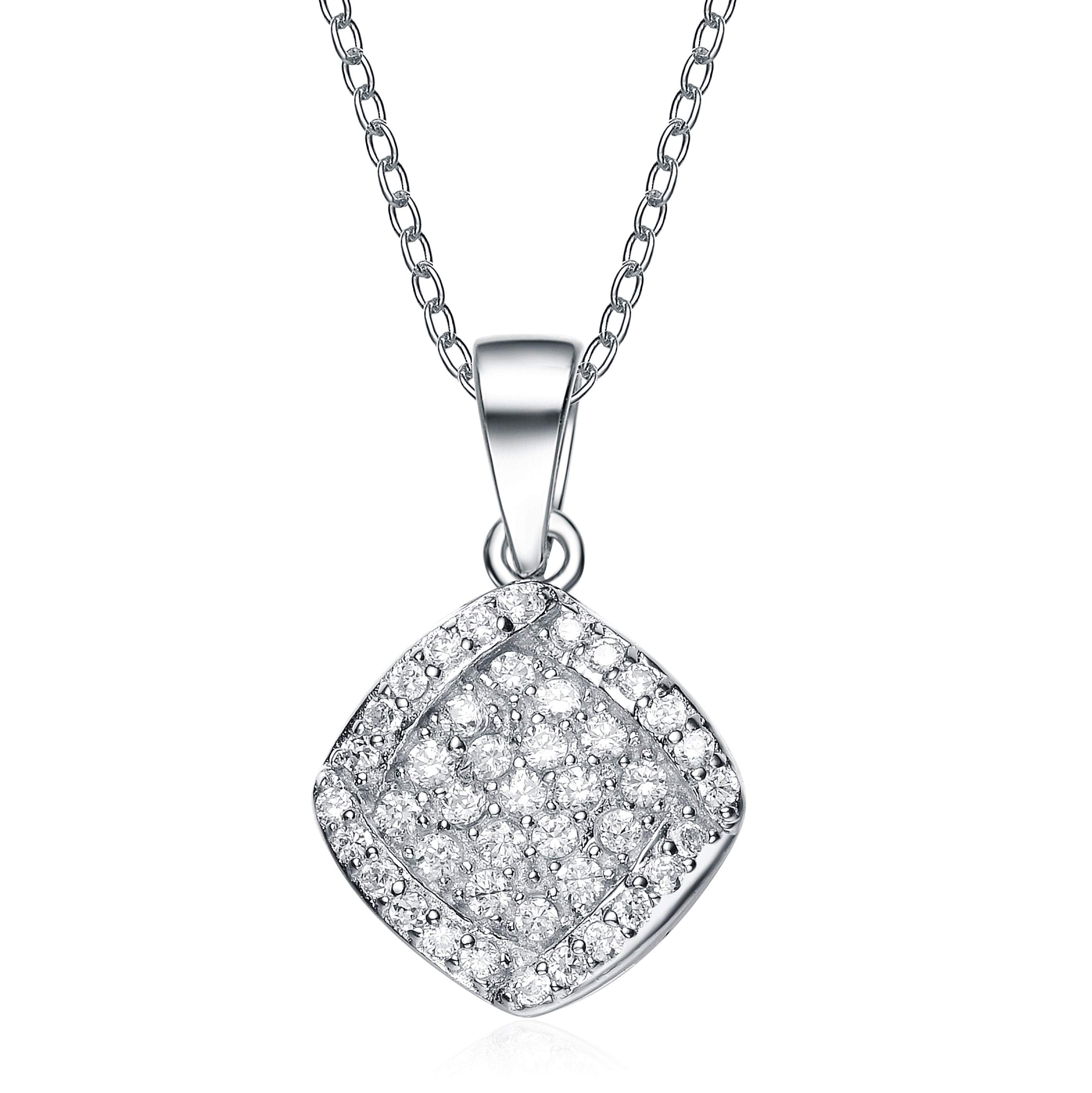 Sterling Silver Clear Cubic Zirconia Pave Shape Necklace